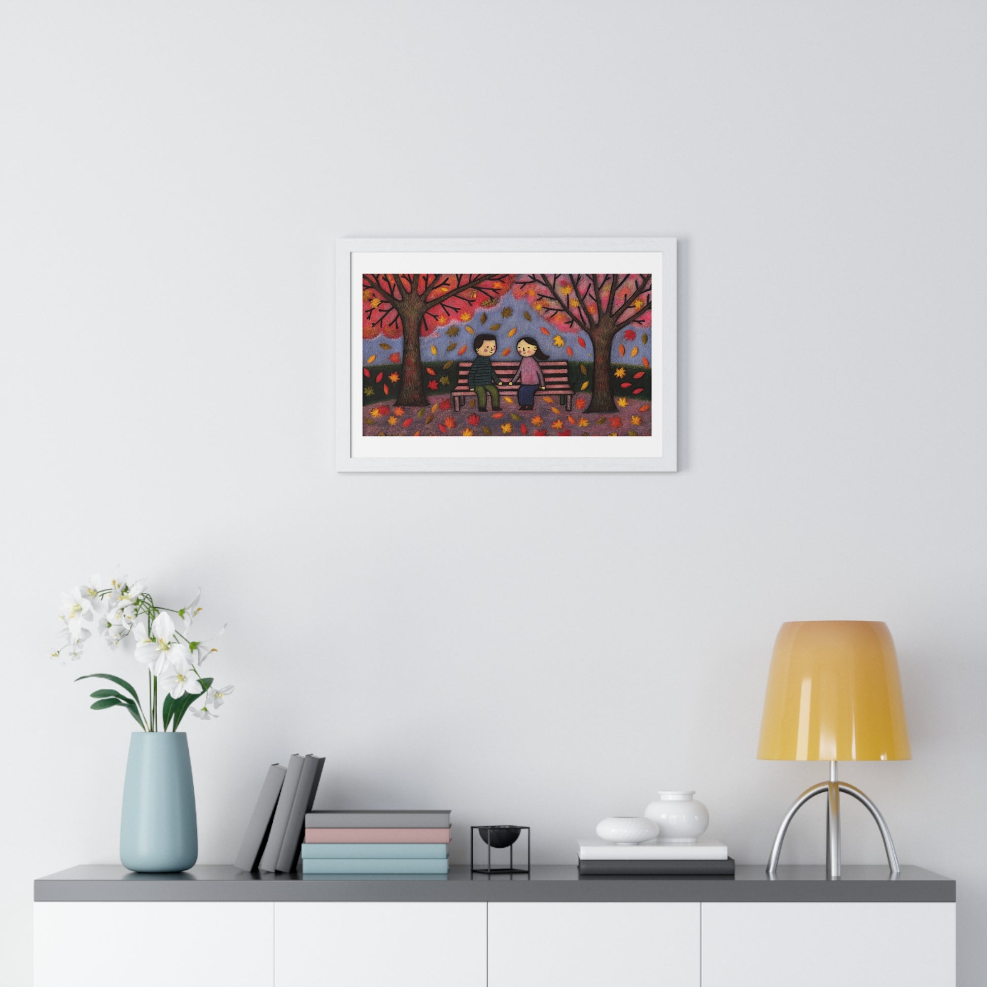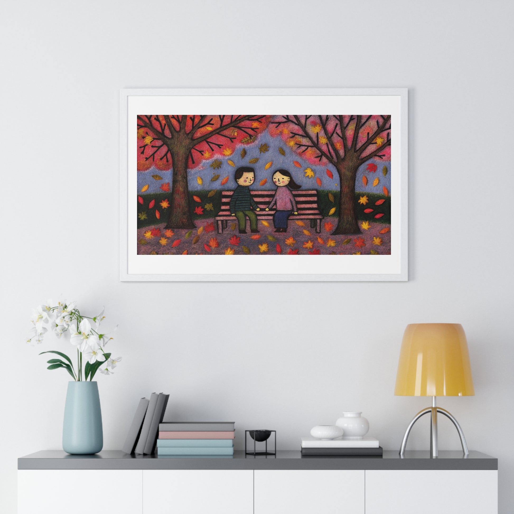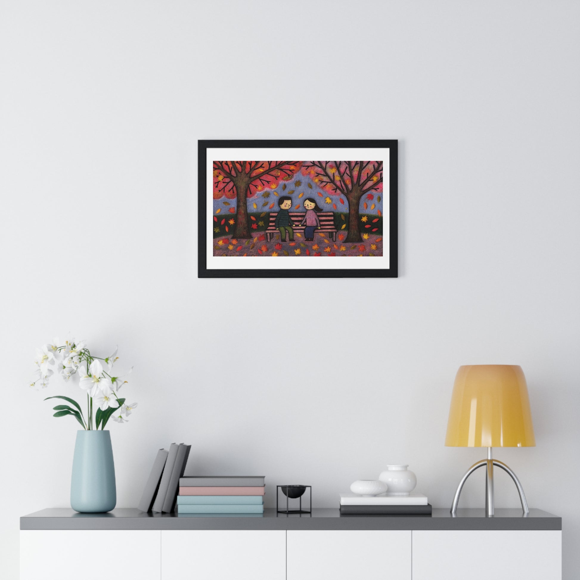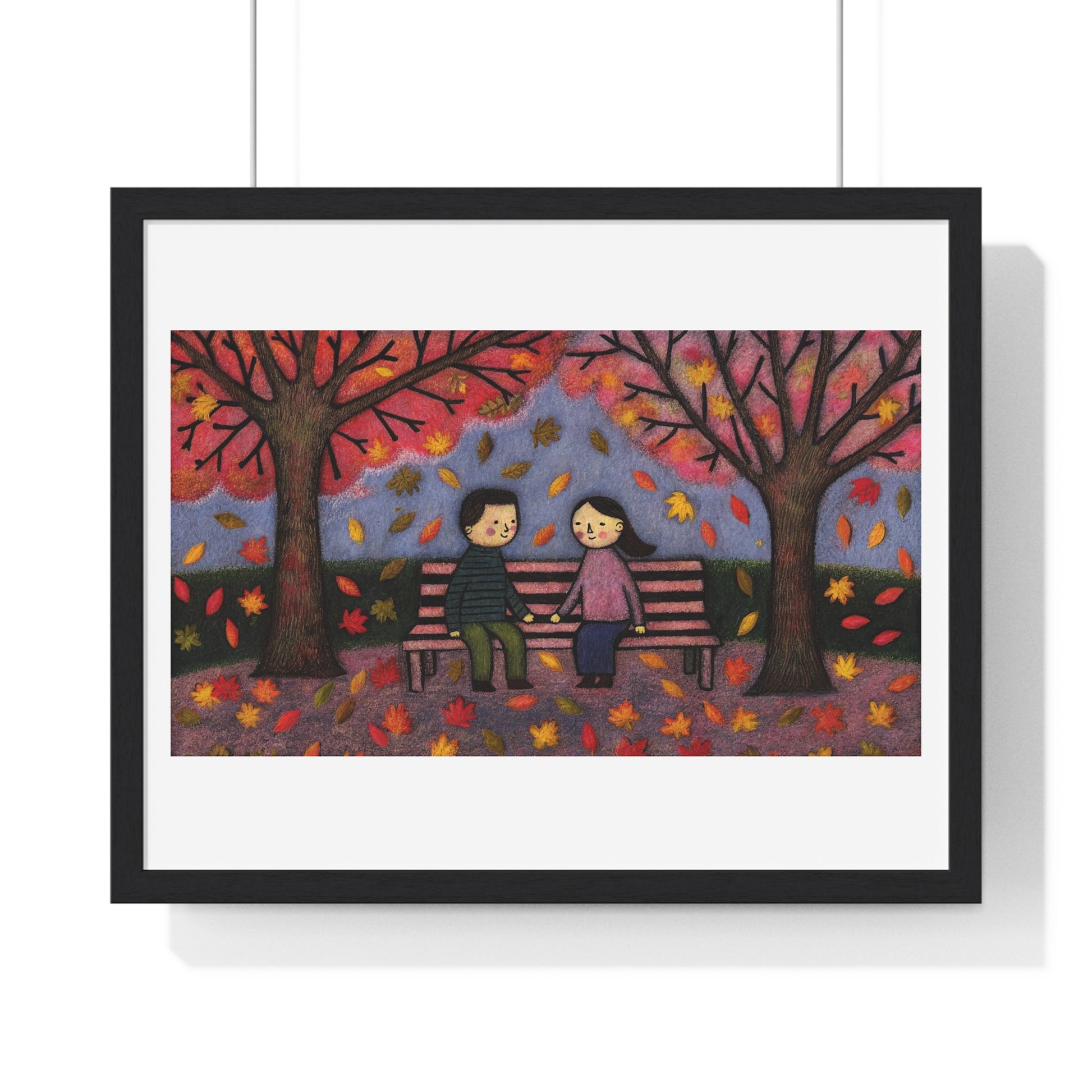 Couple on a Park Bench Fuzzy Felt Art II 'Designed by AI' Framed Print