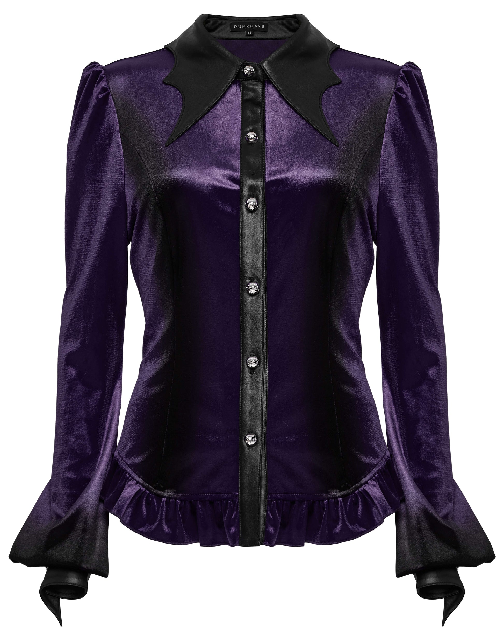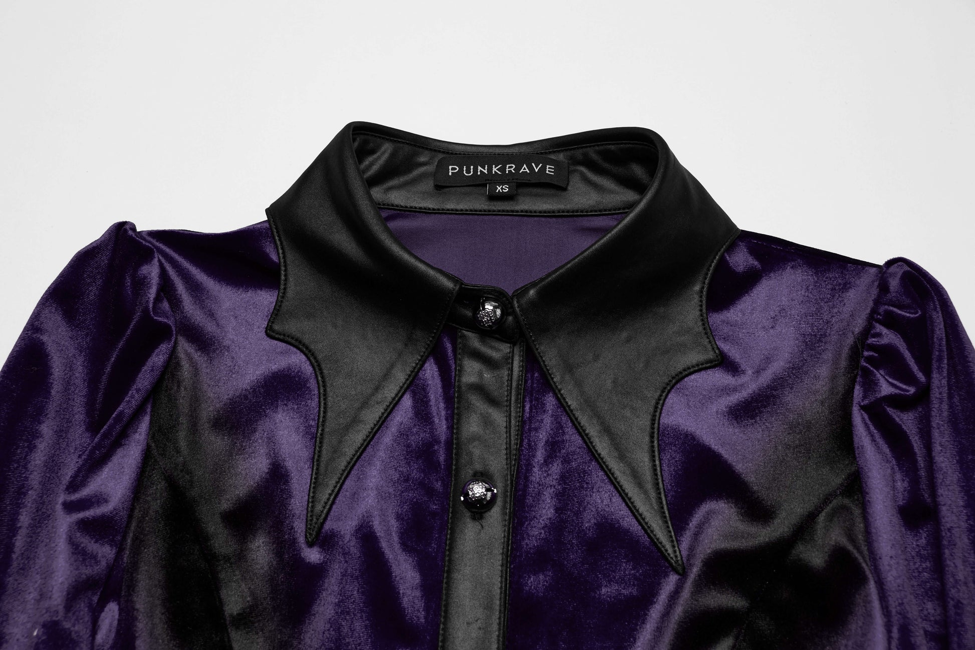 Get ready to stand out in style with the Punk Rave Fawn Gradient Printed Shirt in Violet. Made from soft and stretchy velvet, this shirt features a unique gradient design that accentuates your feminine shape.