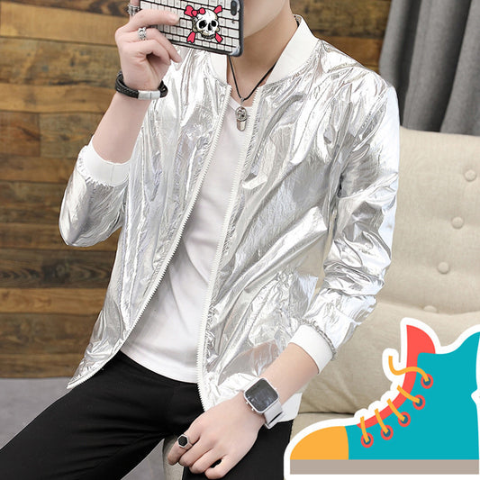 Men's Baggy Glossy Bomber Jacket, Singer Performance Wear