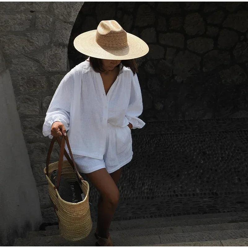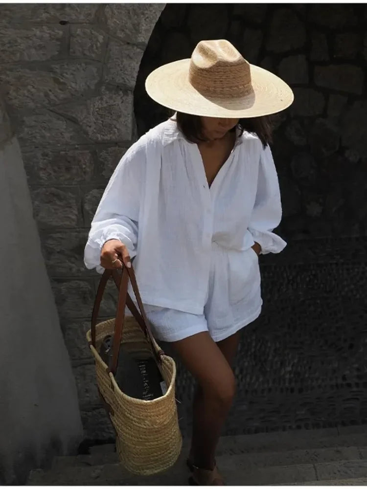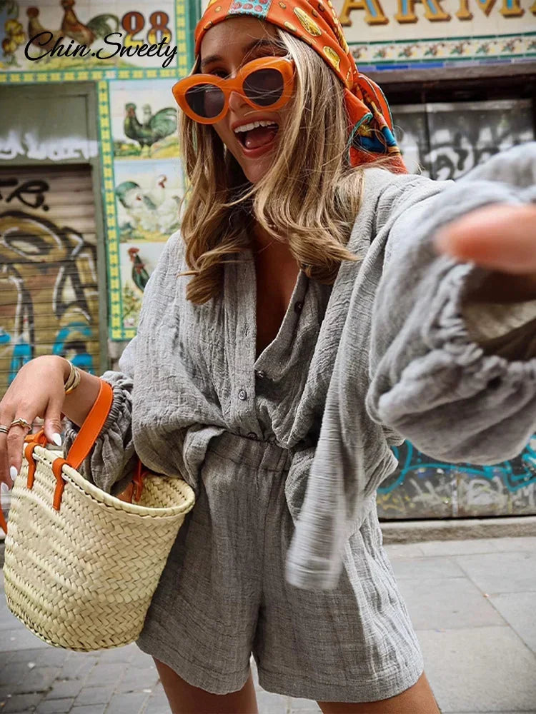 Cotton Linen Women's Two-Piece Summer Shorts Set, Plus Sizes