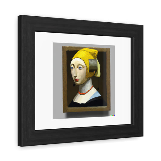 Robot With A Pearl Earring In The Style Of Johannes Vermeer 'Designed by AI' Wooden Framed Print