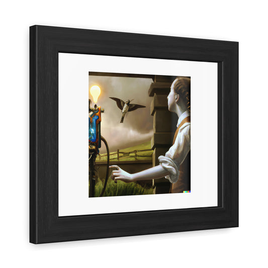 An Experiment On A Bird In The Air Pump In The Style Of Joseph Wright 'Designed by AI' Wooden Framed Print