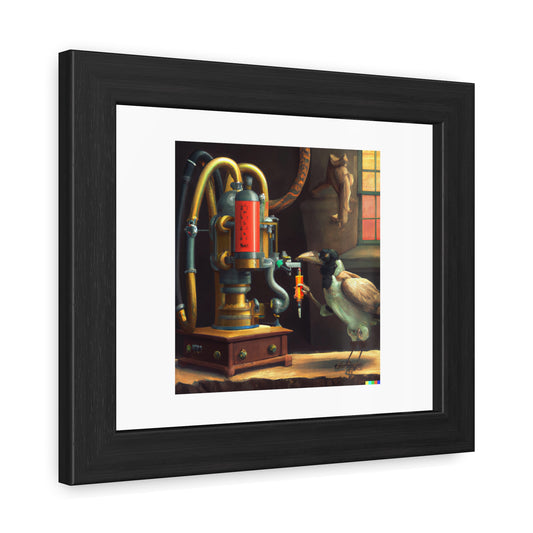 An Experiment On A Bird In The Air Pump Beside A Robot Machine In The Style Of Joseph Wright 'Designed by AI' Wooden Framed Print