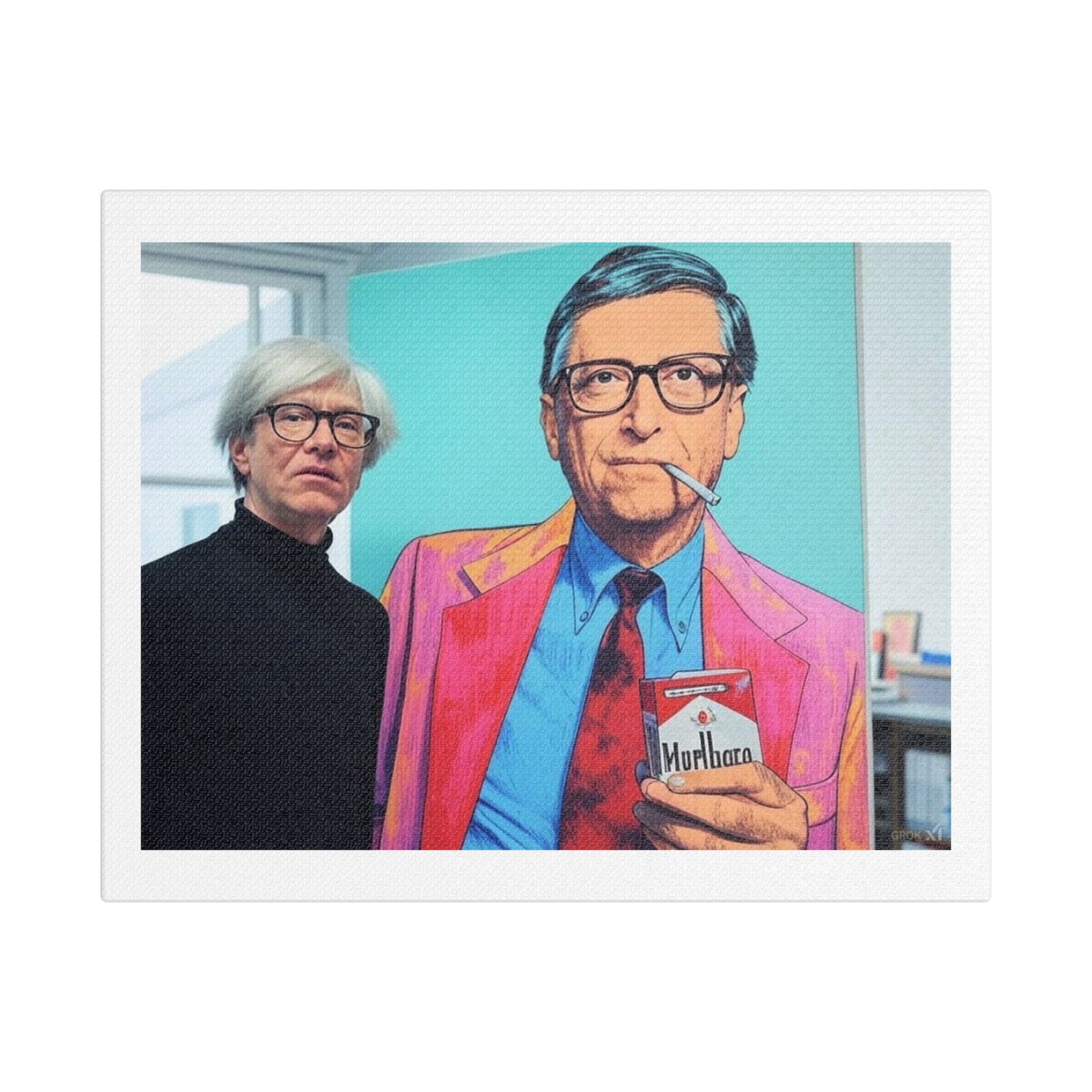 Andy Warhol at the Exhibition of his Iconic Bill Gates Marlboro Advertisement Series, Art Print 'Designed by AI' on Canvas