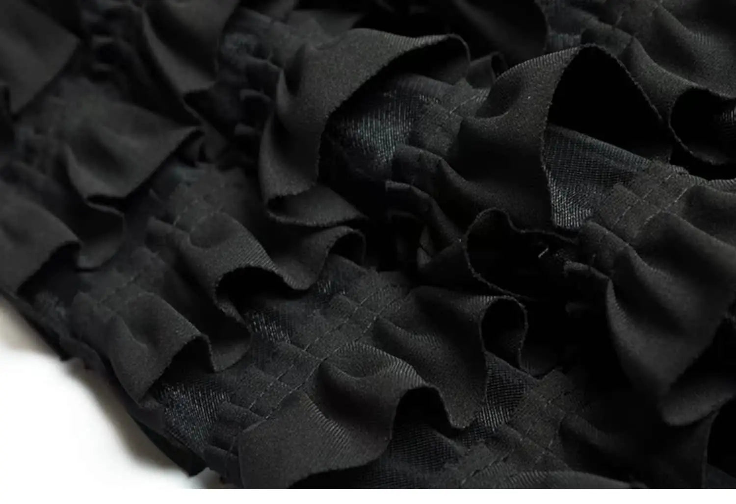 Vireous Black Suit-Collar Tiered Maxi Dress, Winter Catwalk Collection