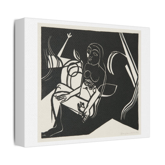 Seated Female Nude with Flower (1918) by Heinrich Campendonk, from the Original, Print on Satin Canvas