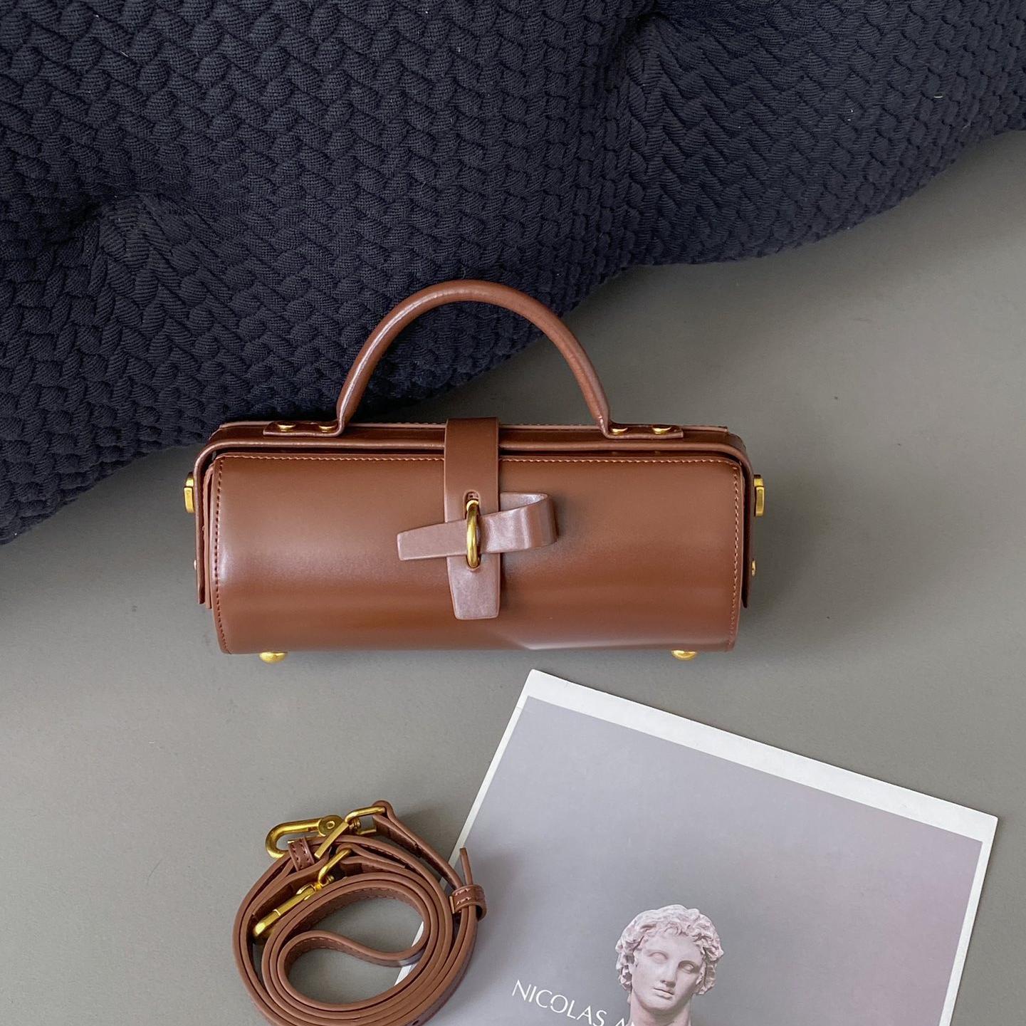 Vireous First Layer Cowhide Underarm Single-Shoulder Cylinder Messenger Bag