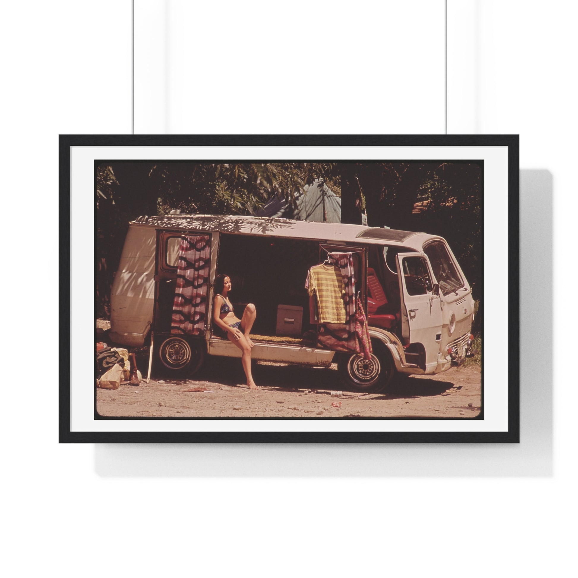 Vintage Photography, Campers at Garner State Park (1972) by Marc St Gil, from the Original, Framed Print