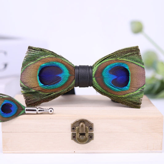 Men's Bow Tie, Peacock Big Eyes Blue Feather