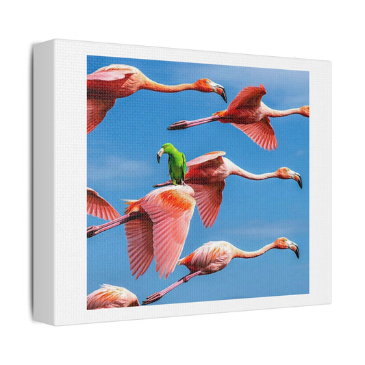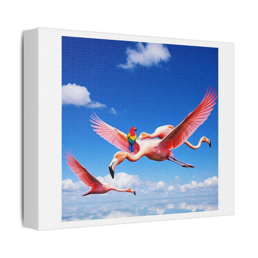 What a Ride! Flamingo Art 'Designed by AI' Print on Canvas