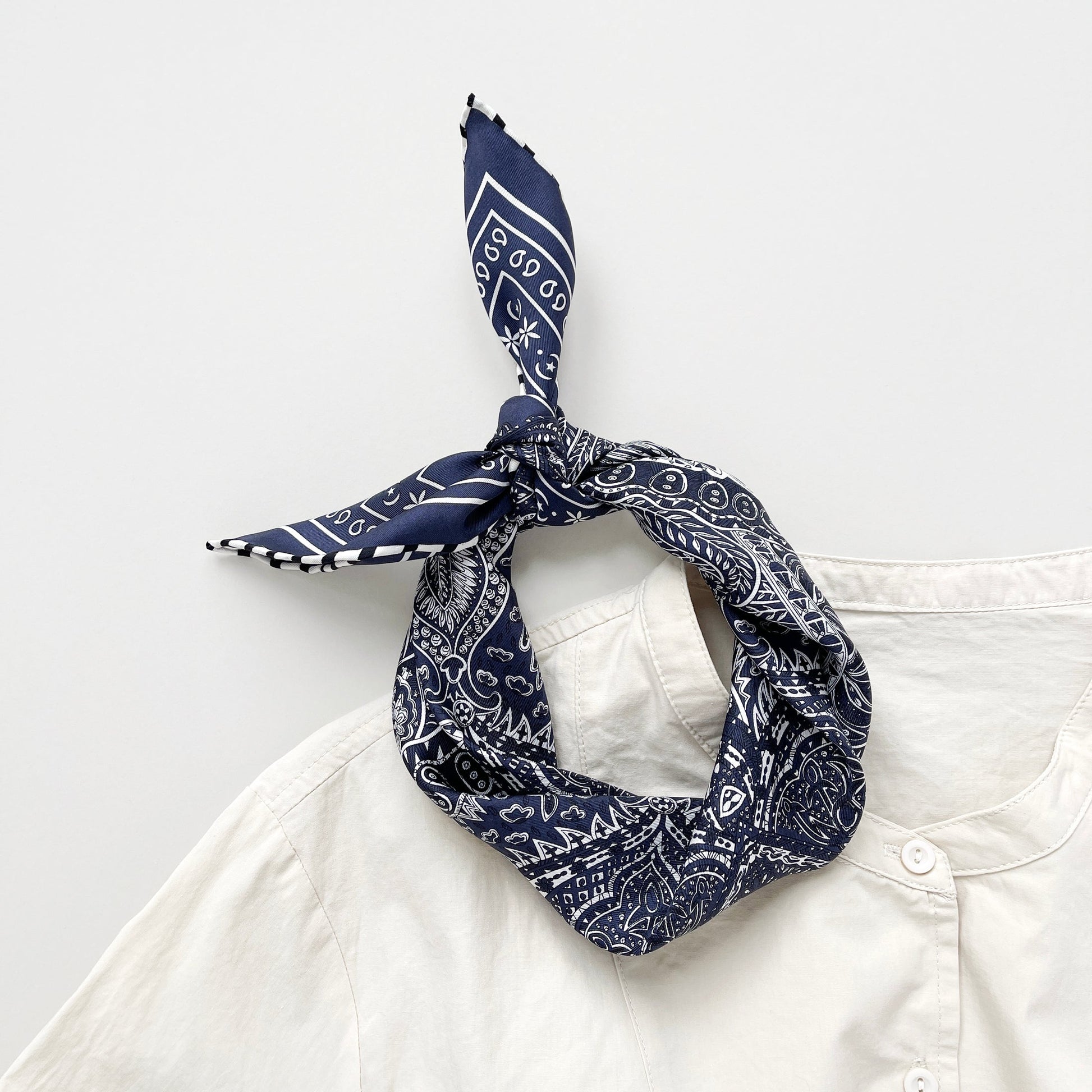 Navy Heritage Paisley Silk Scarf, 53cm Hand-Rolled Unisex Bandana