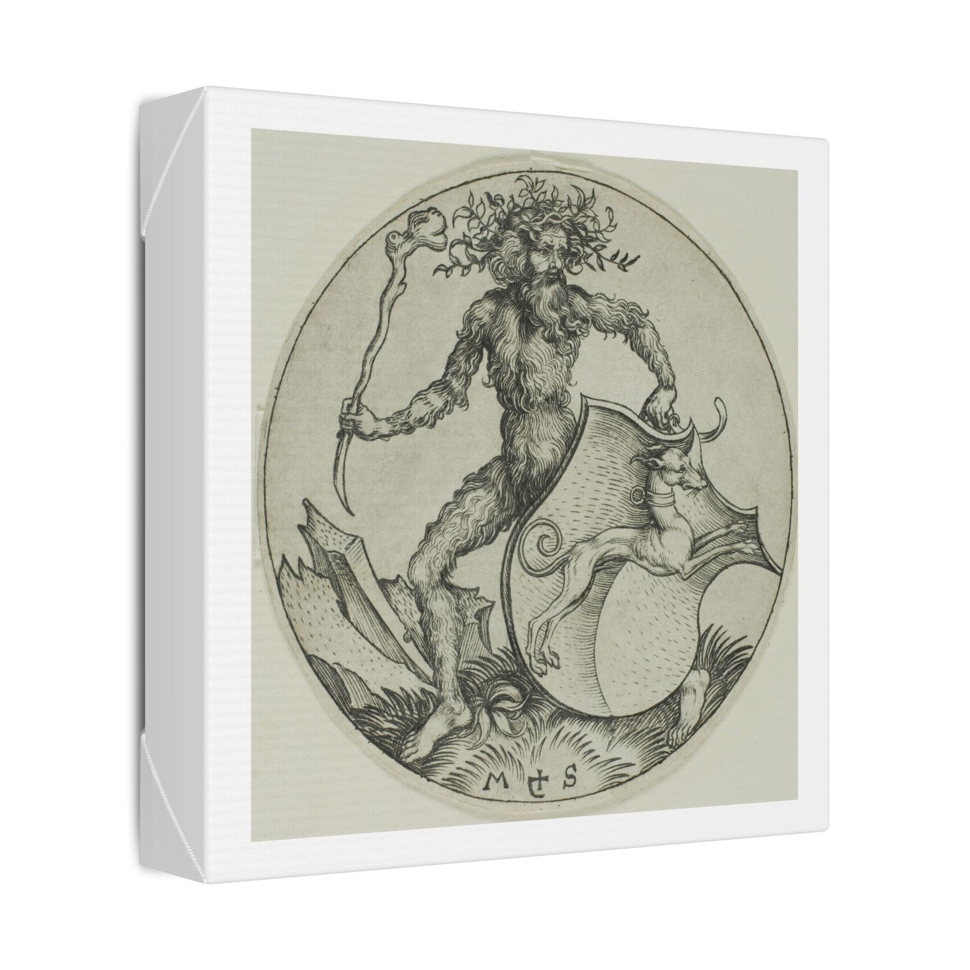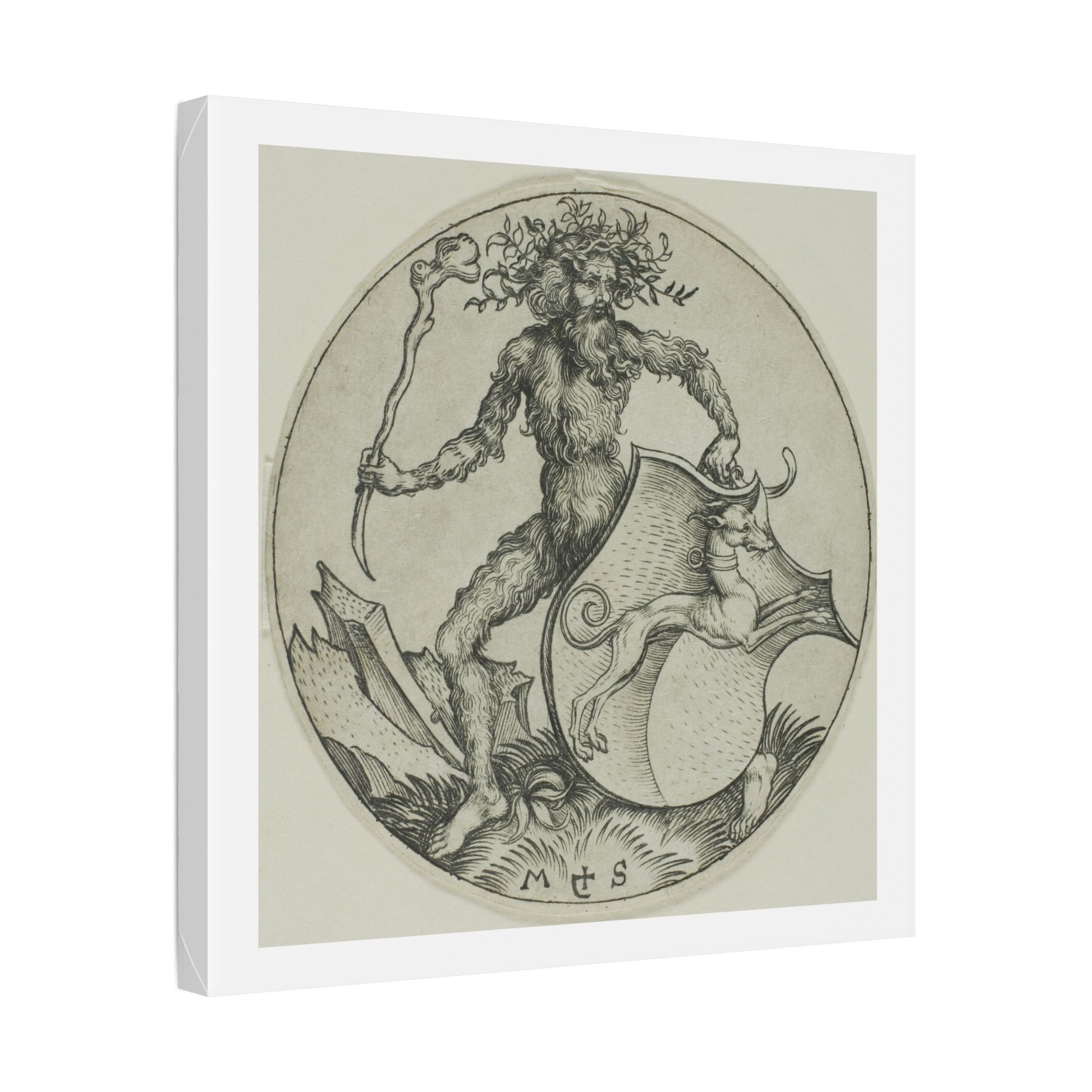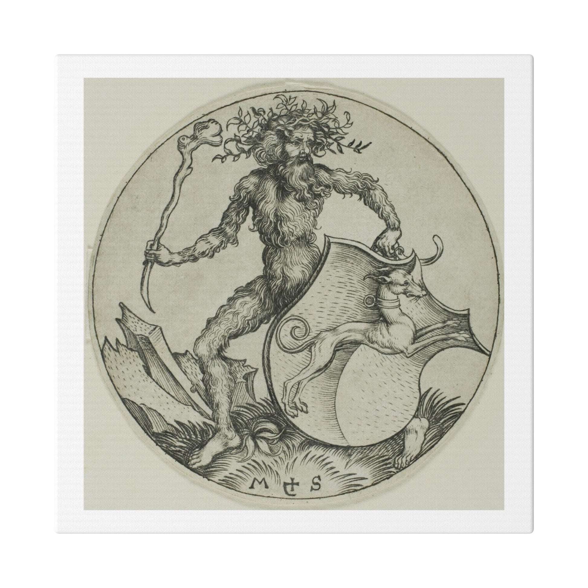 Shield with a Greyhound, Held by a Wild Man (1470–1491) by Martin Schongauer, from the Original, Canvas Print