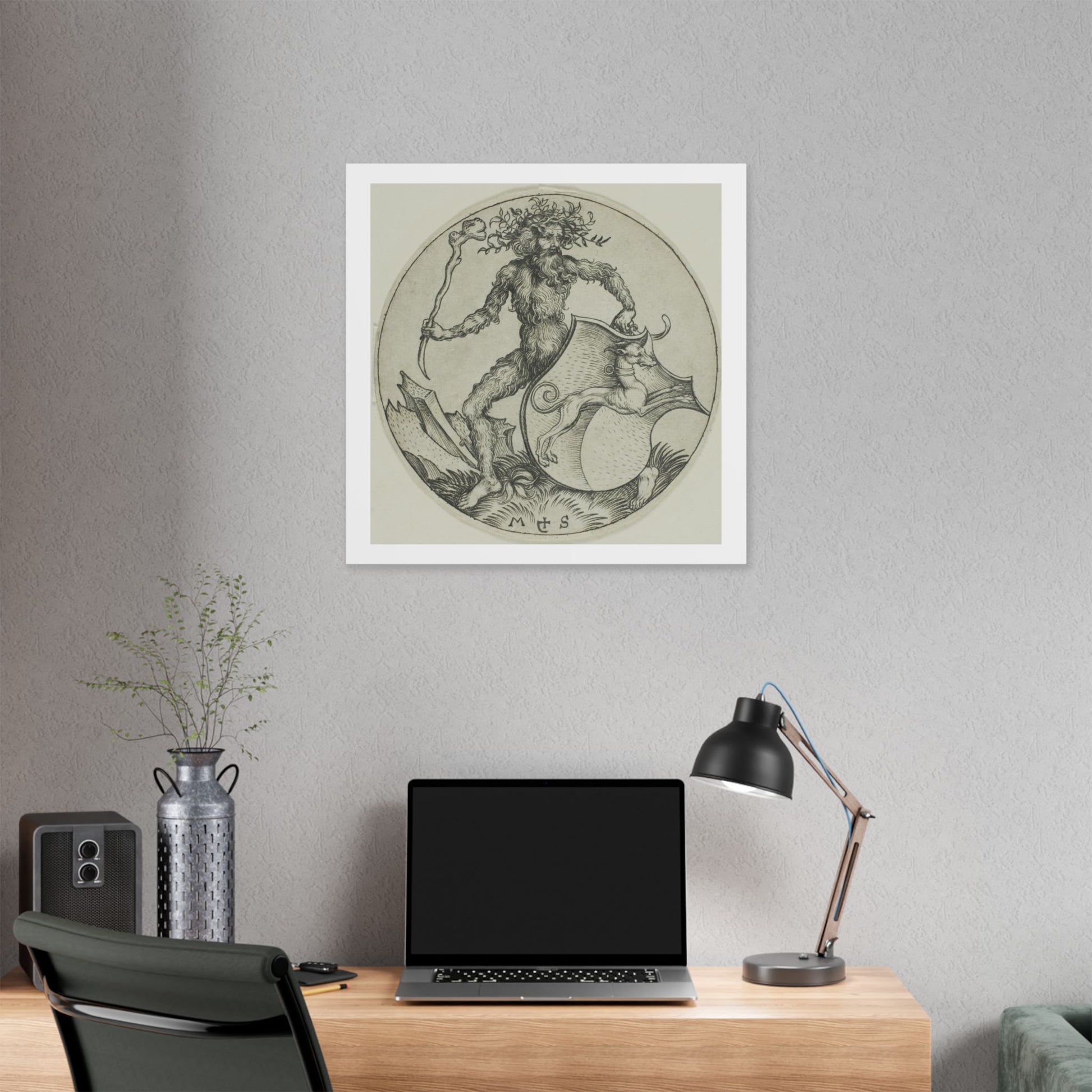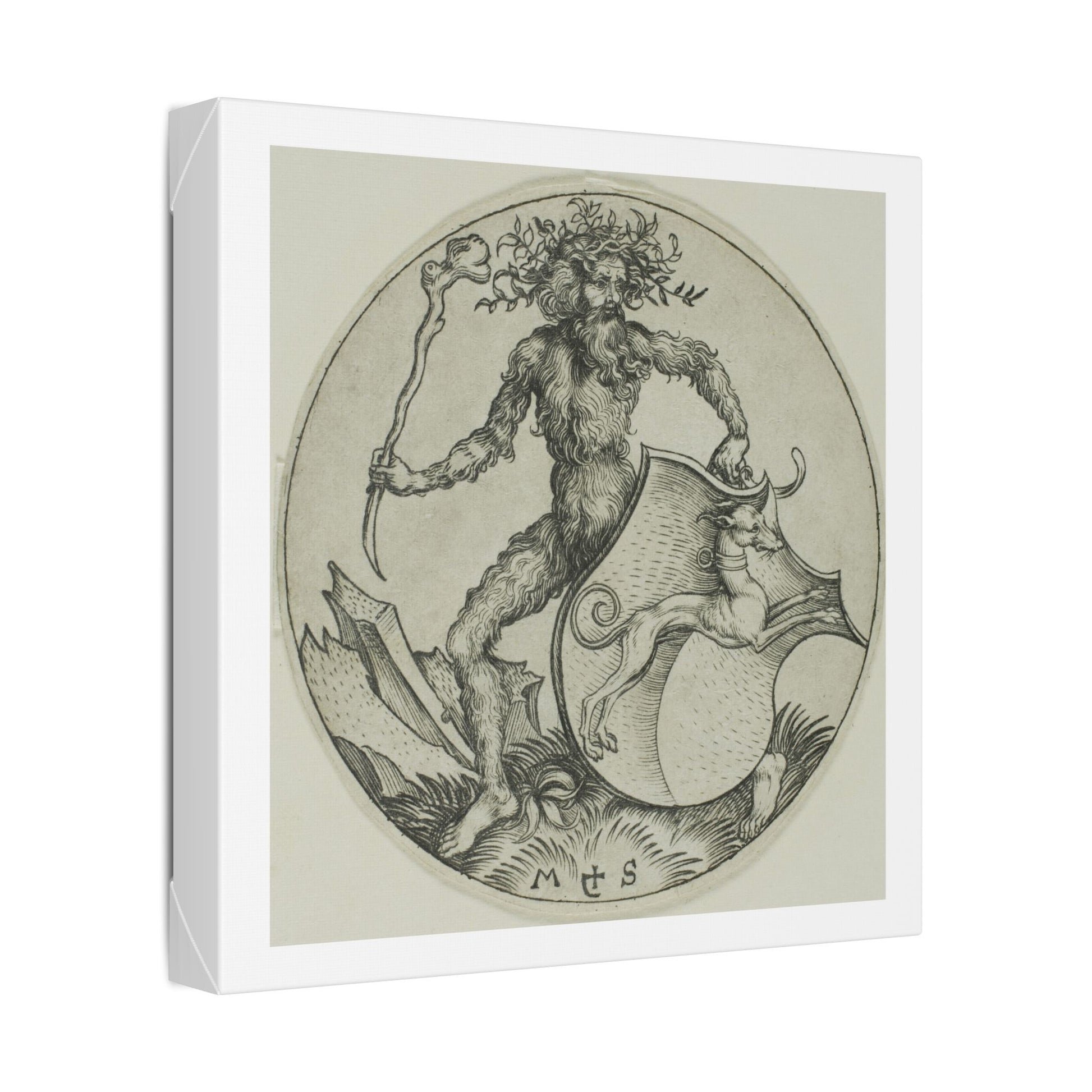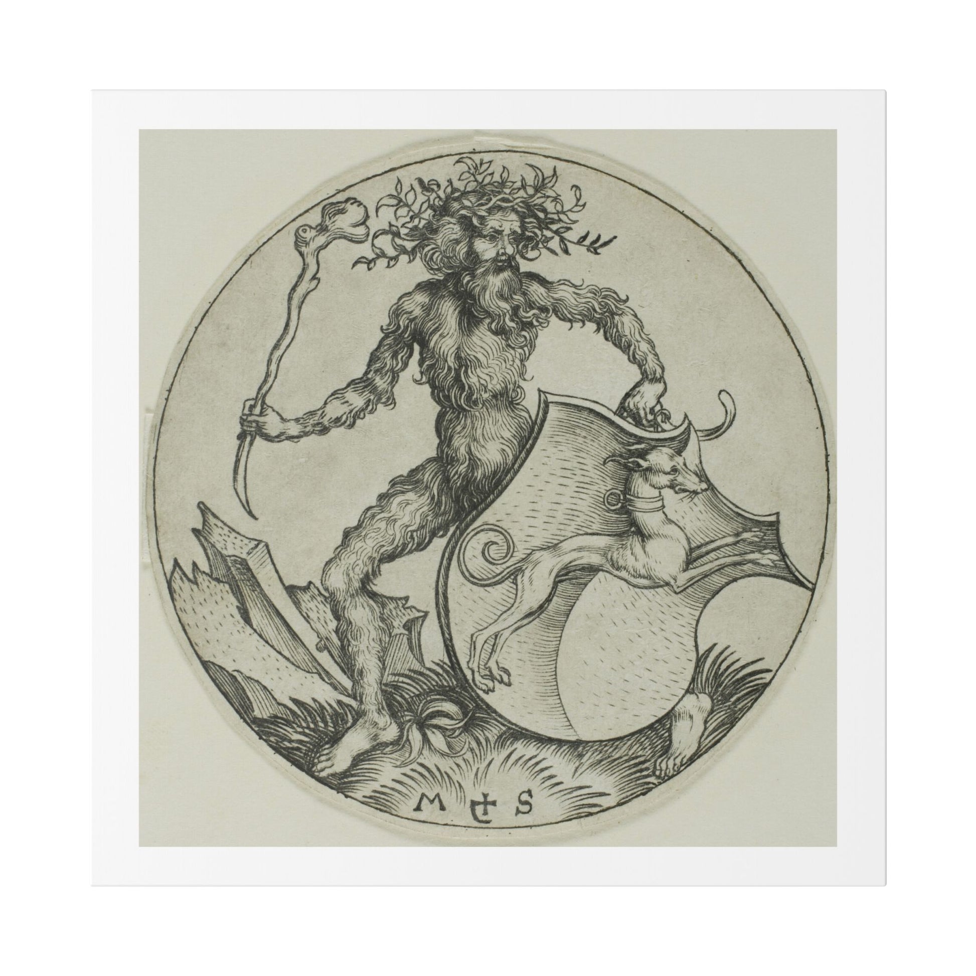 Shield with a Greyhound, Held by a Wild Man (1470–1491) by Martin Schongauer, from the Original, Canvas Print