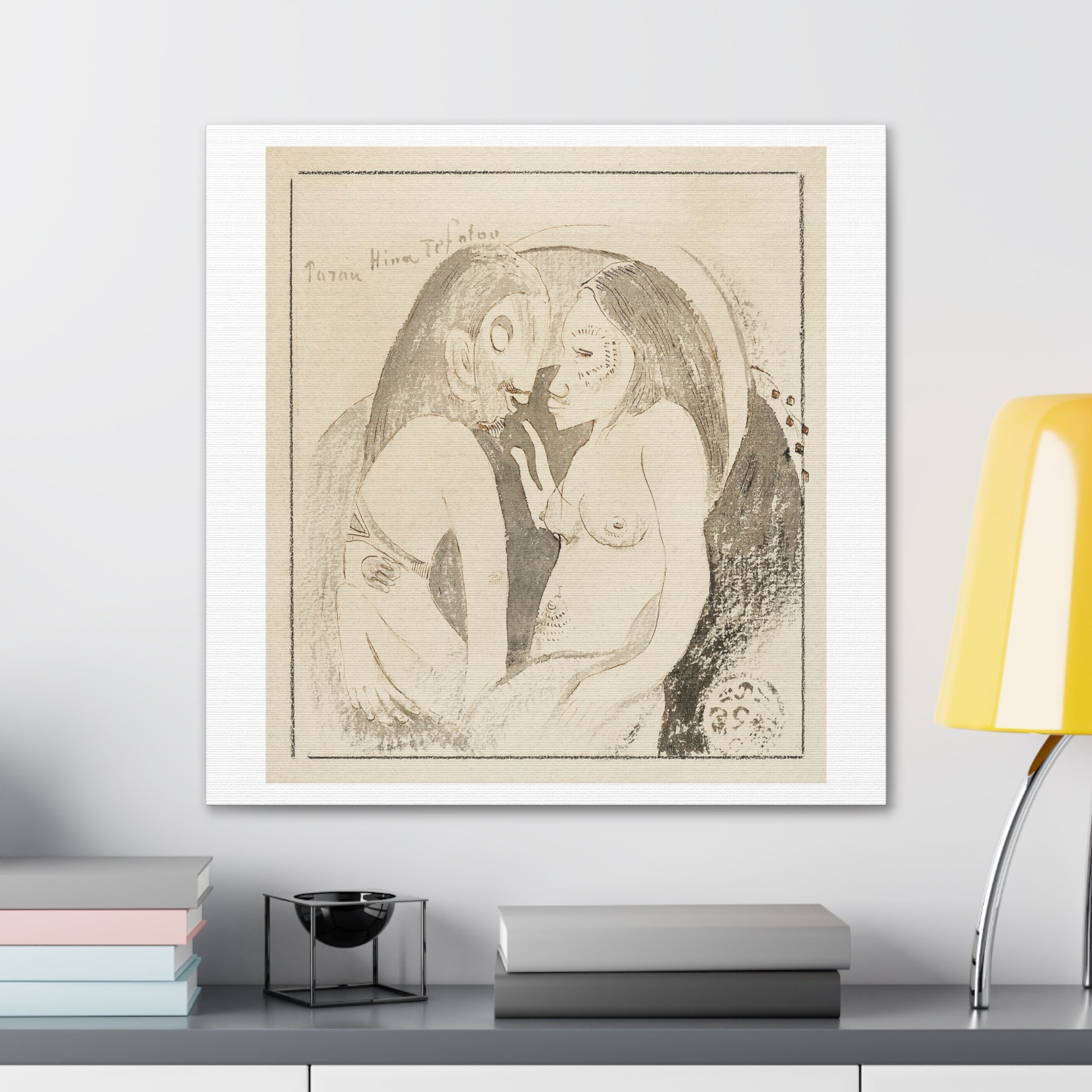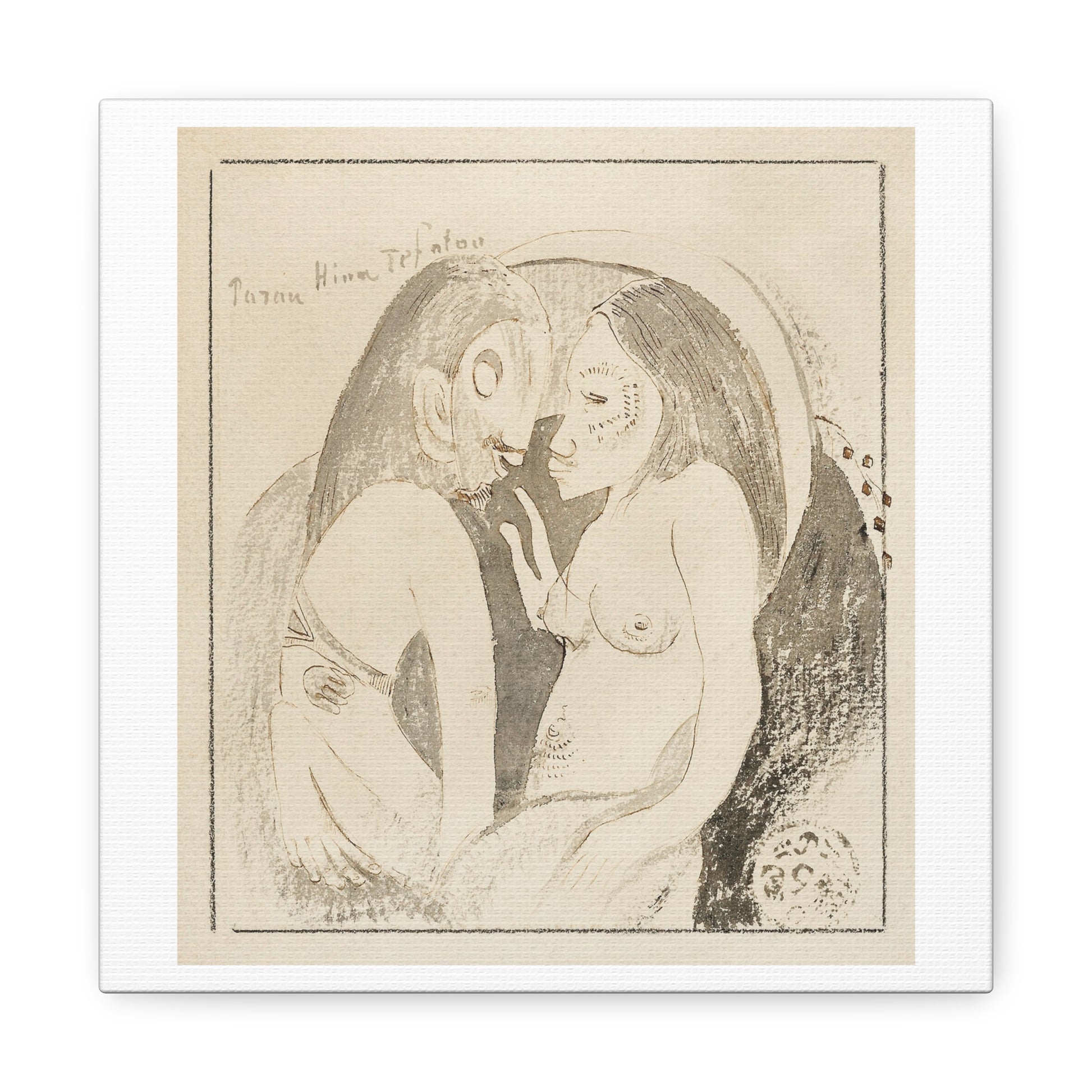 Words Between Goddess of the Moon and God of the Earth 'Parau Hina Tefatou' (1893–1894) by Paul Gauguin, from the Original, Print on Canvas