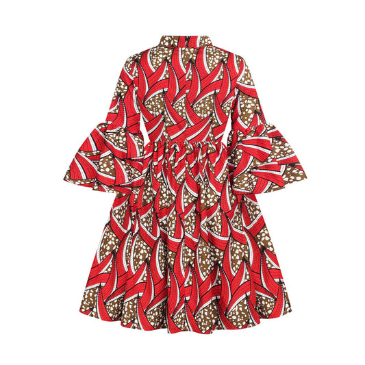 'Mamma Mia' Boho Look Three-Quarter Ruffle Sleeve V-Neck Dress