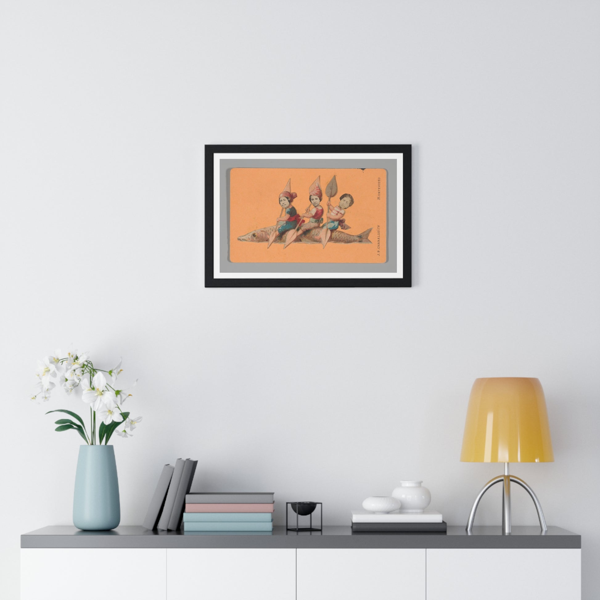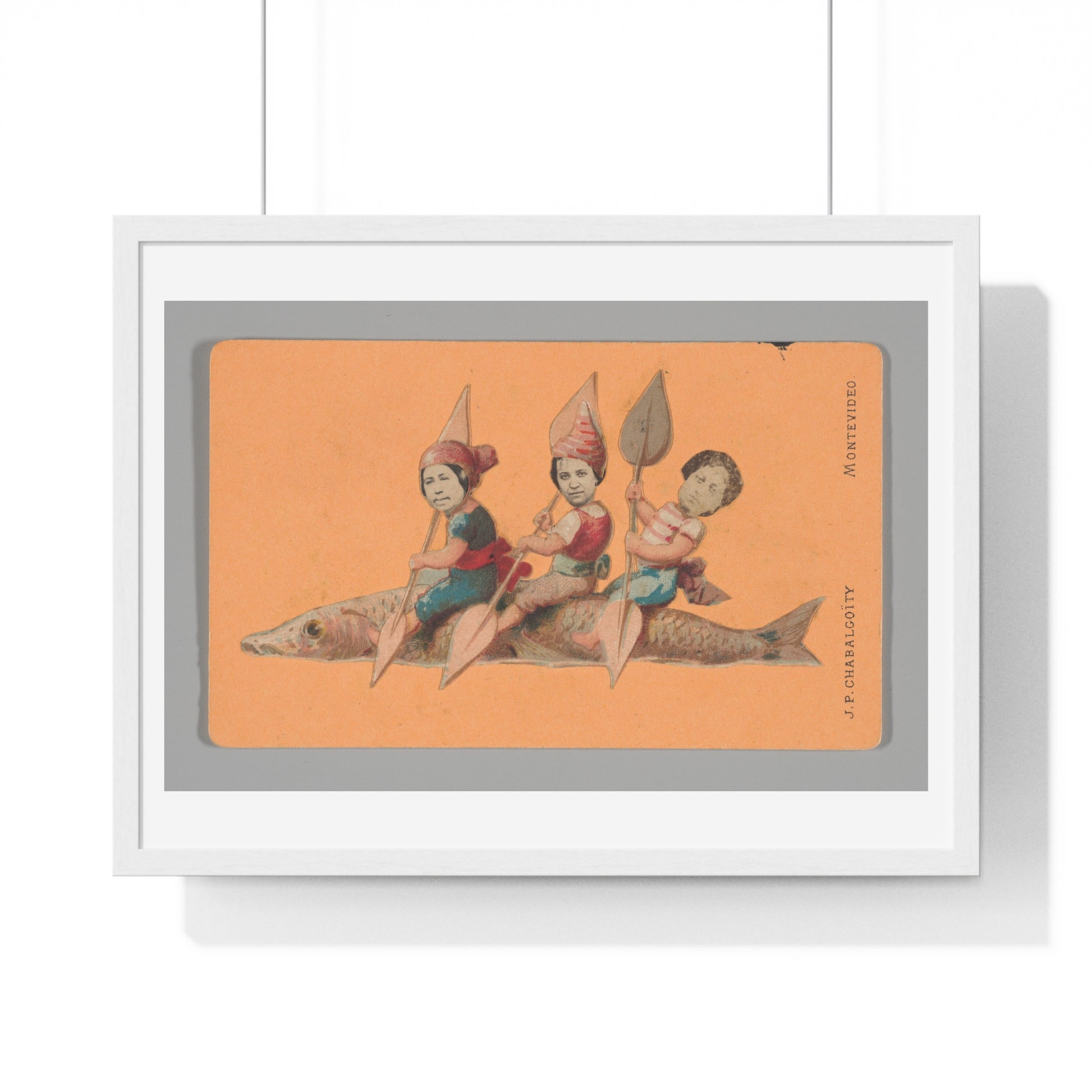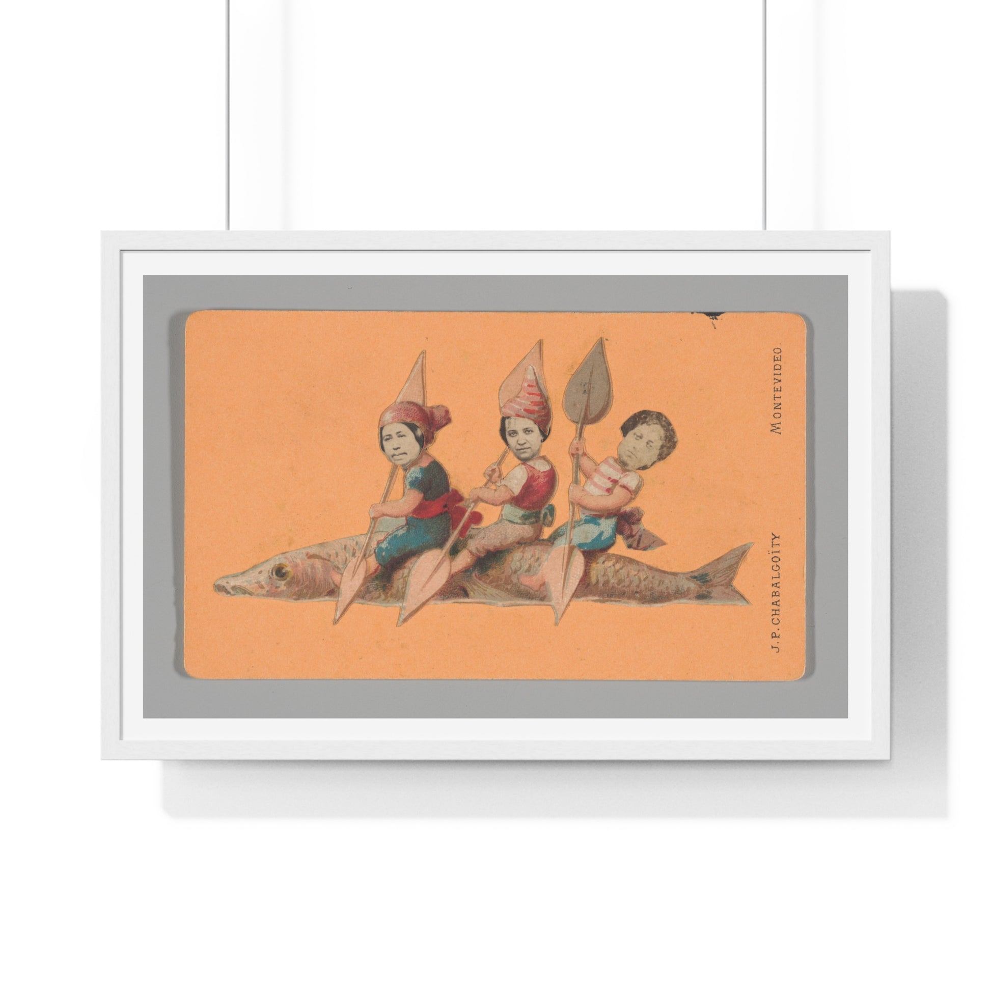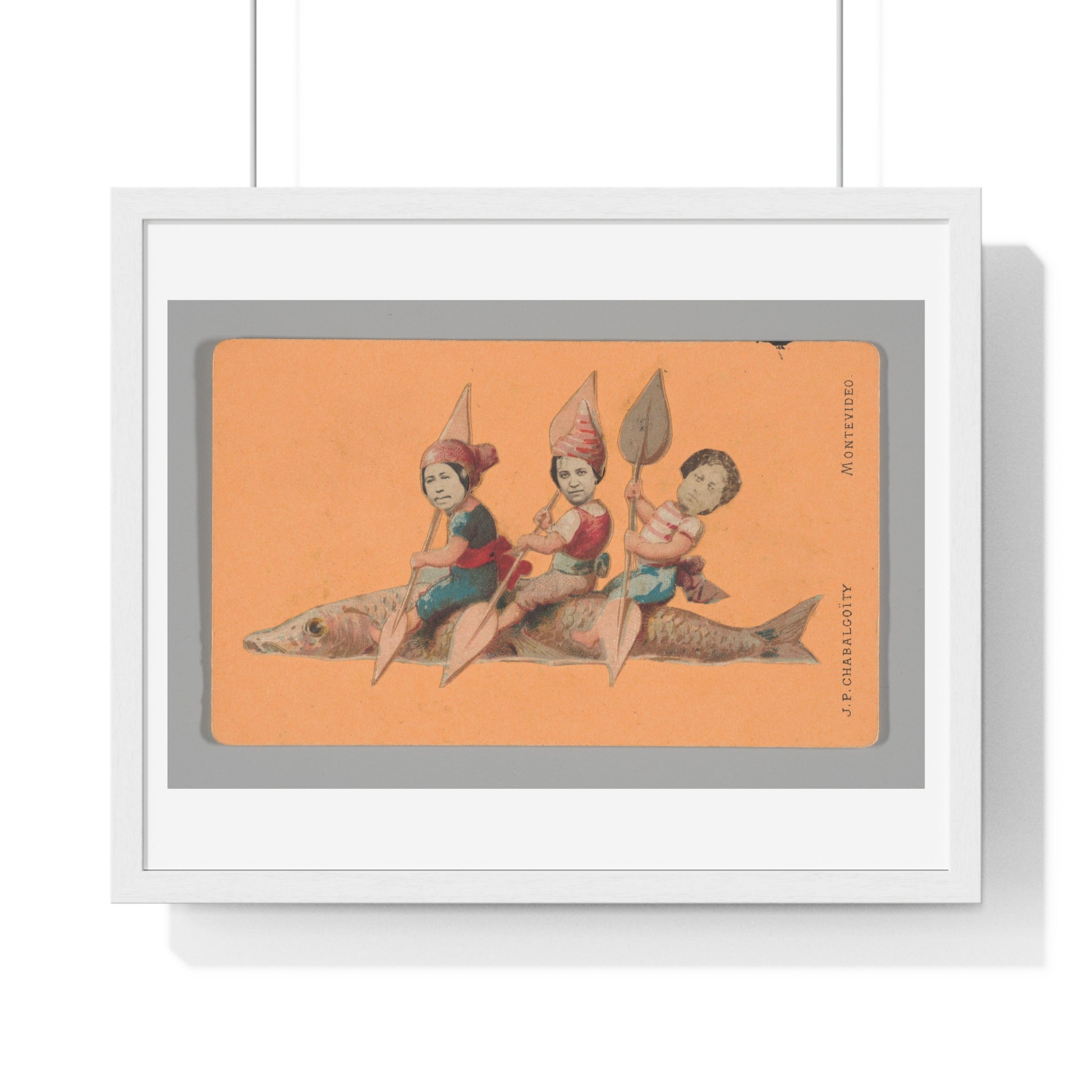 Uruguayan Photo Collage, Three People Holding Oars, Sitting on a Large Fish (circa 1875) Framed Art Print