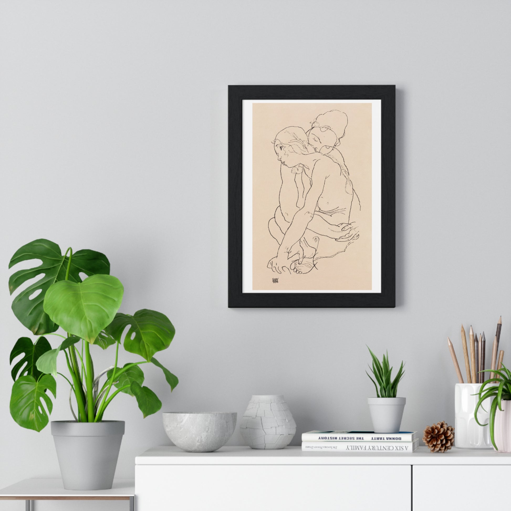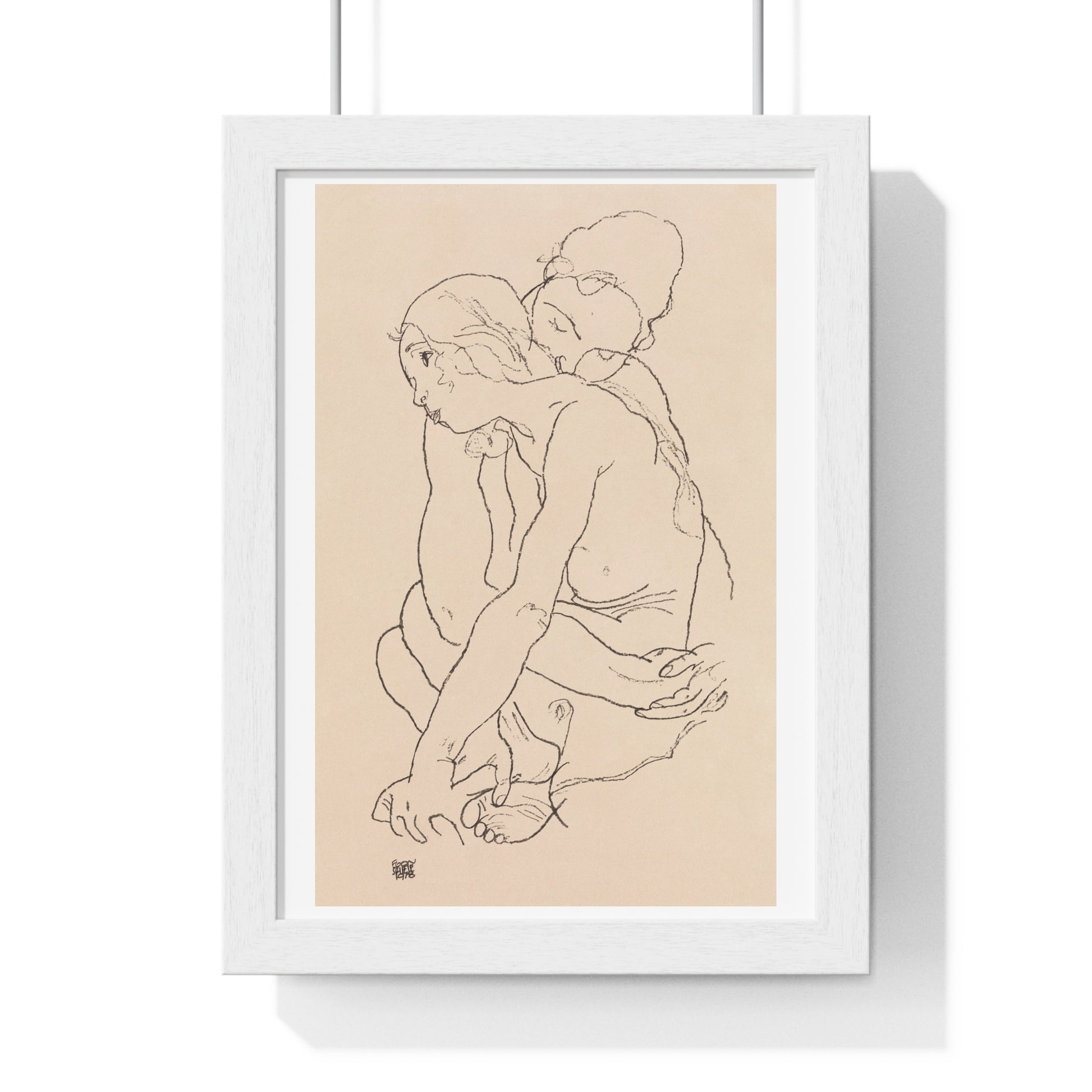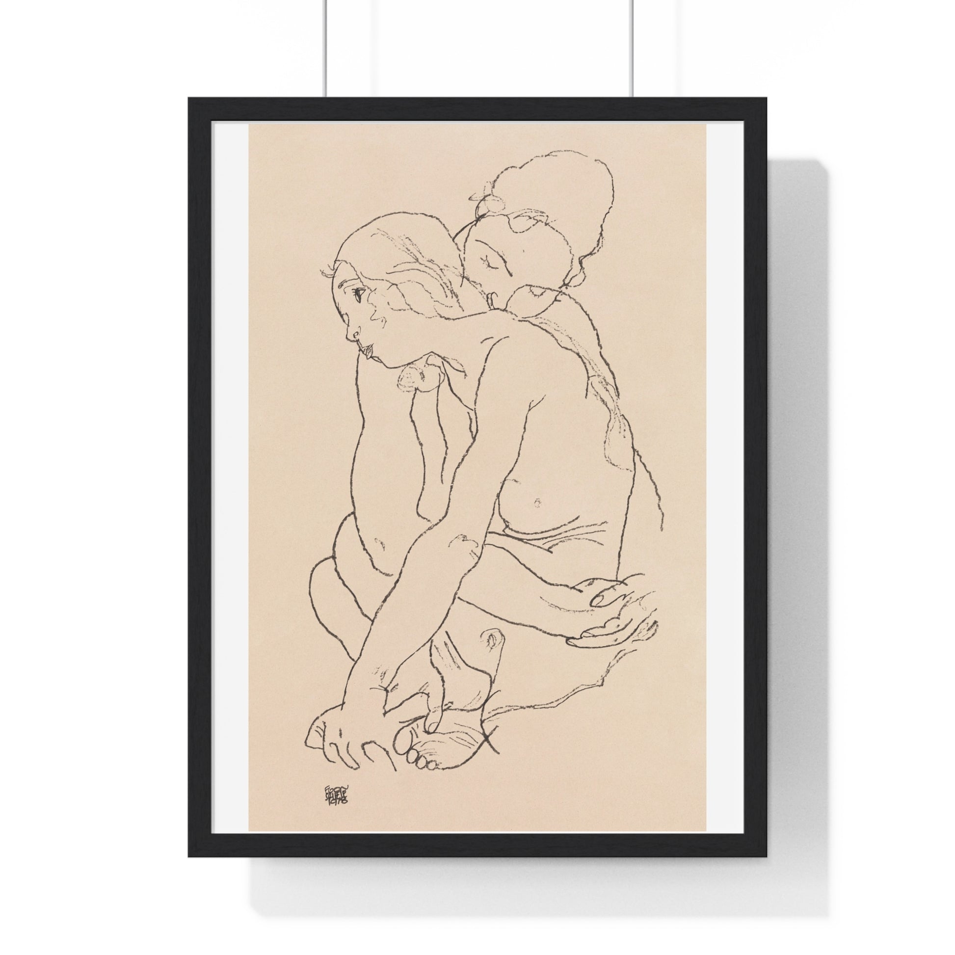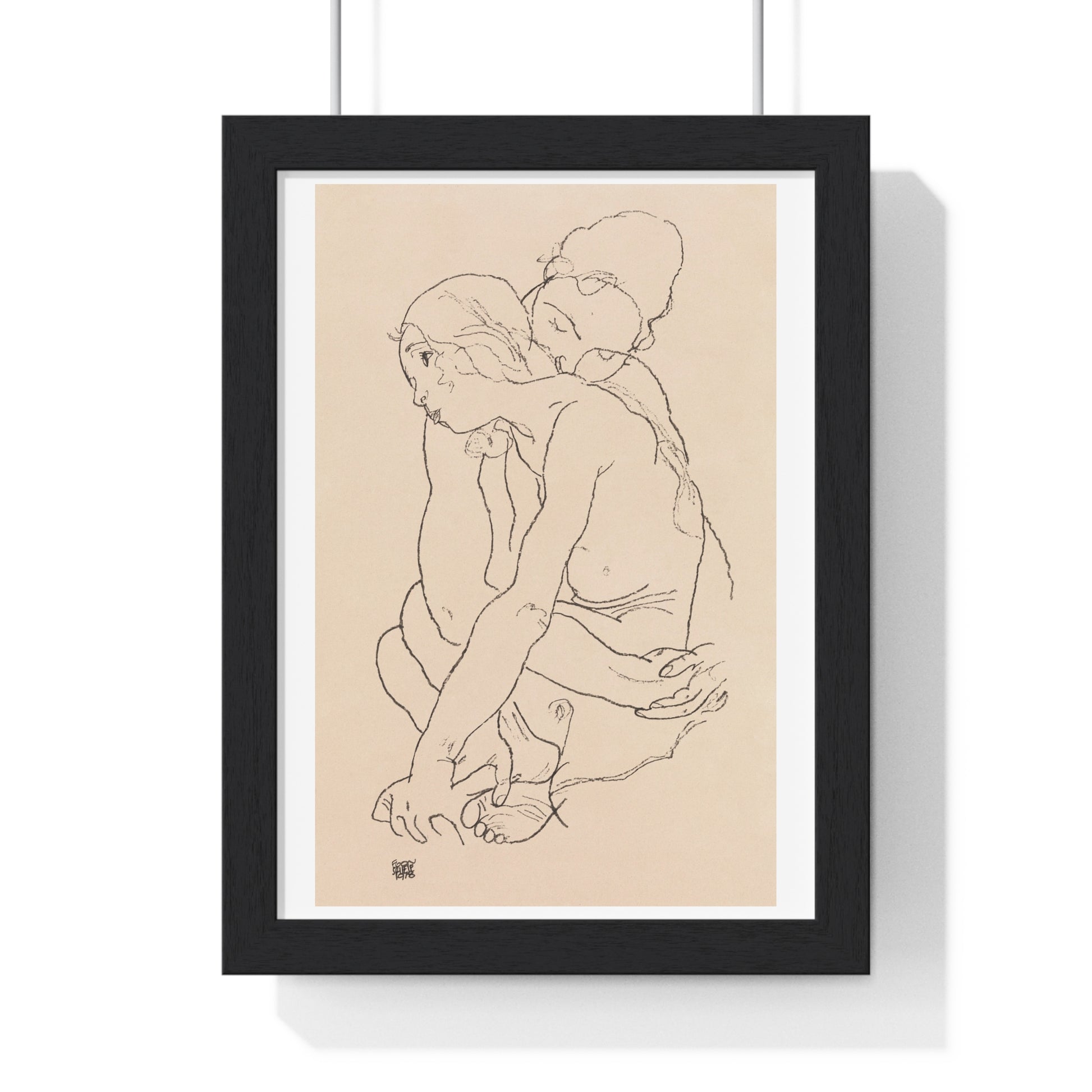Woman and Girl Embracing (1918) by Egon Schiele, from the Original, Framed Art Print