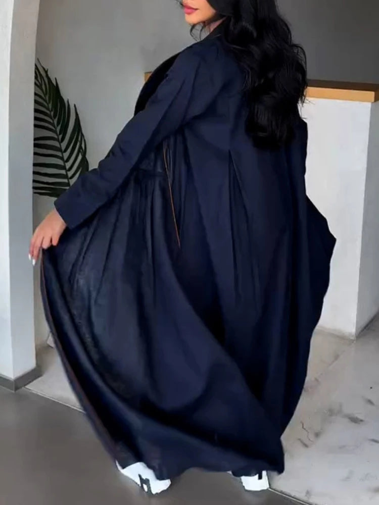Vireous Women's Windbreaker Fashion Extra-Long Coat, Loose Ruched