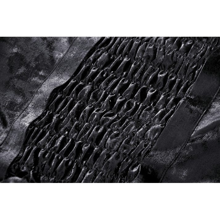 Introducing the Dark in Love Harriet Punk Shiny Faux Leather Layered Dress. Featuring a unique combination of velvet, ruffles, and straps, this edgy dress will give you a bold and confident look. With a corset design, this dress will accentuate your figure and make you stand out in any crowd. Get ready to rock the punk fashion scene with this stylish and daring dress.