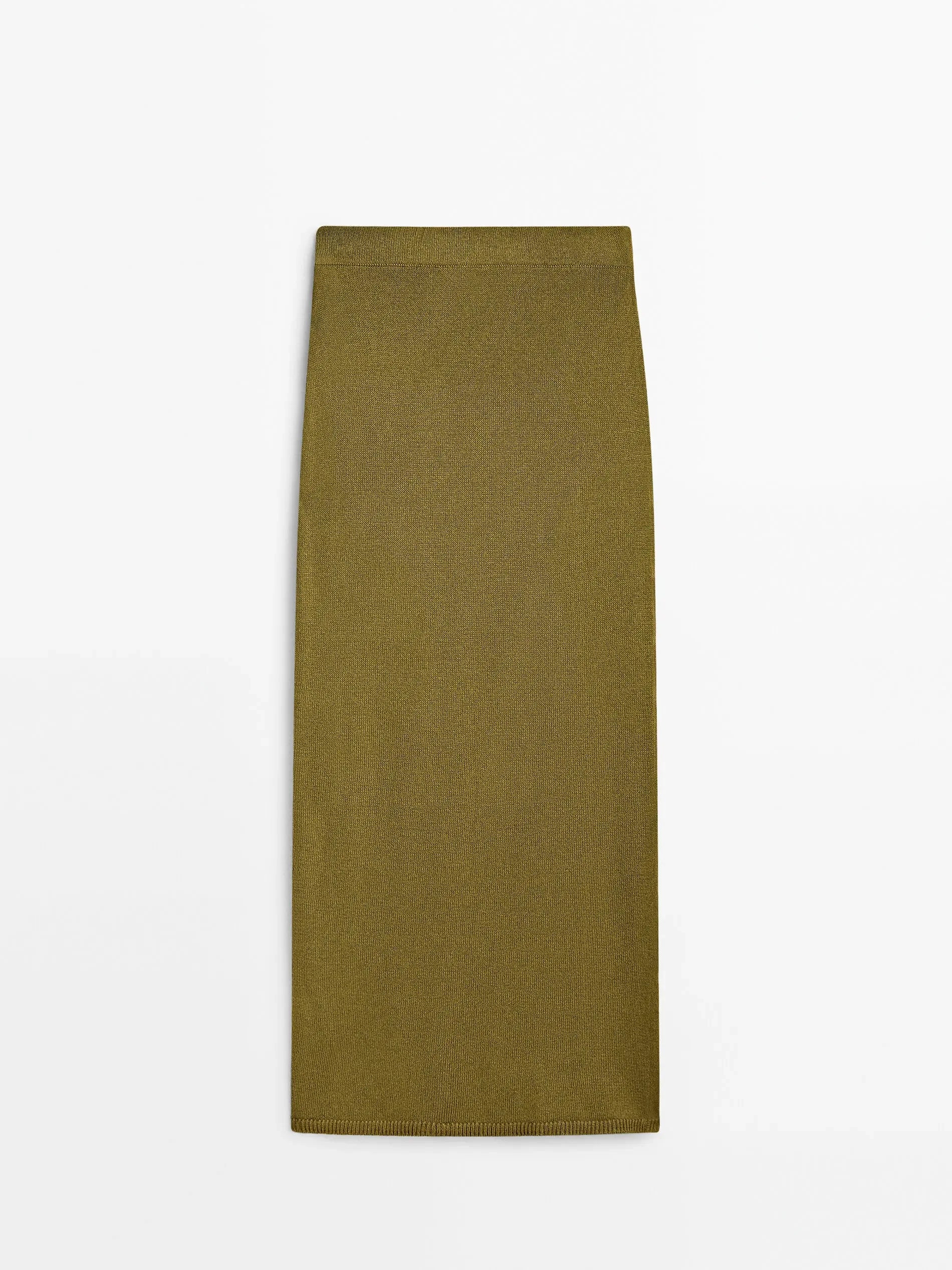 Vireous Women's Fashion Knitted Side-Knot Army Green Split-Front Long Skirt