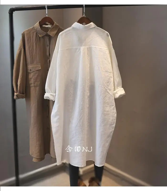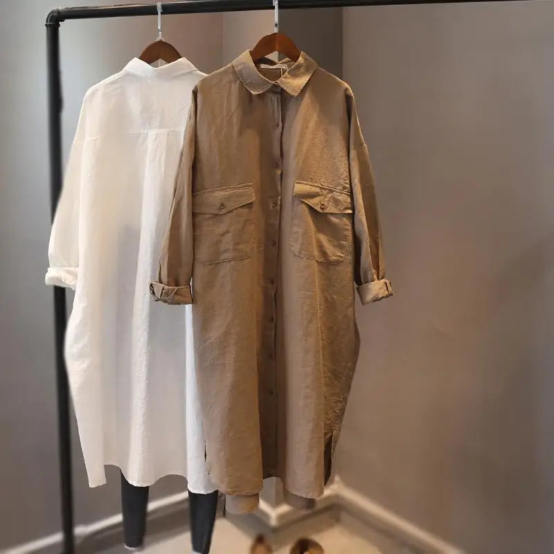 Style: women's plus size, long sleeve shirt dress, unique design, front pockets, full opening at the front