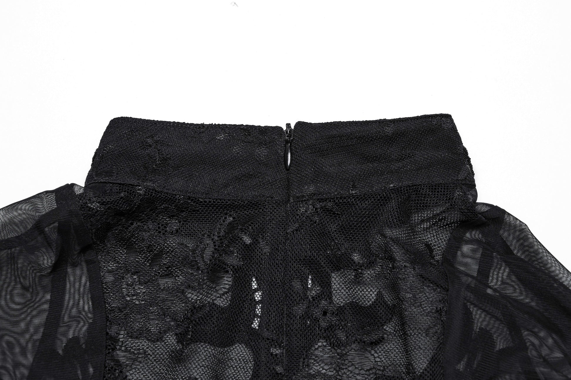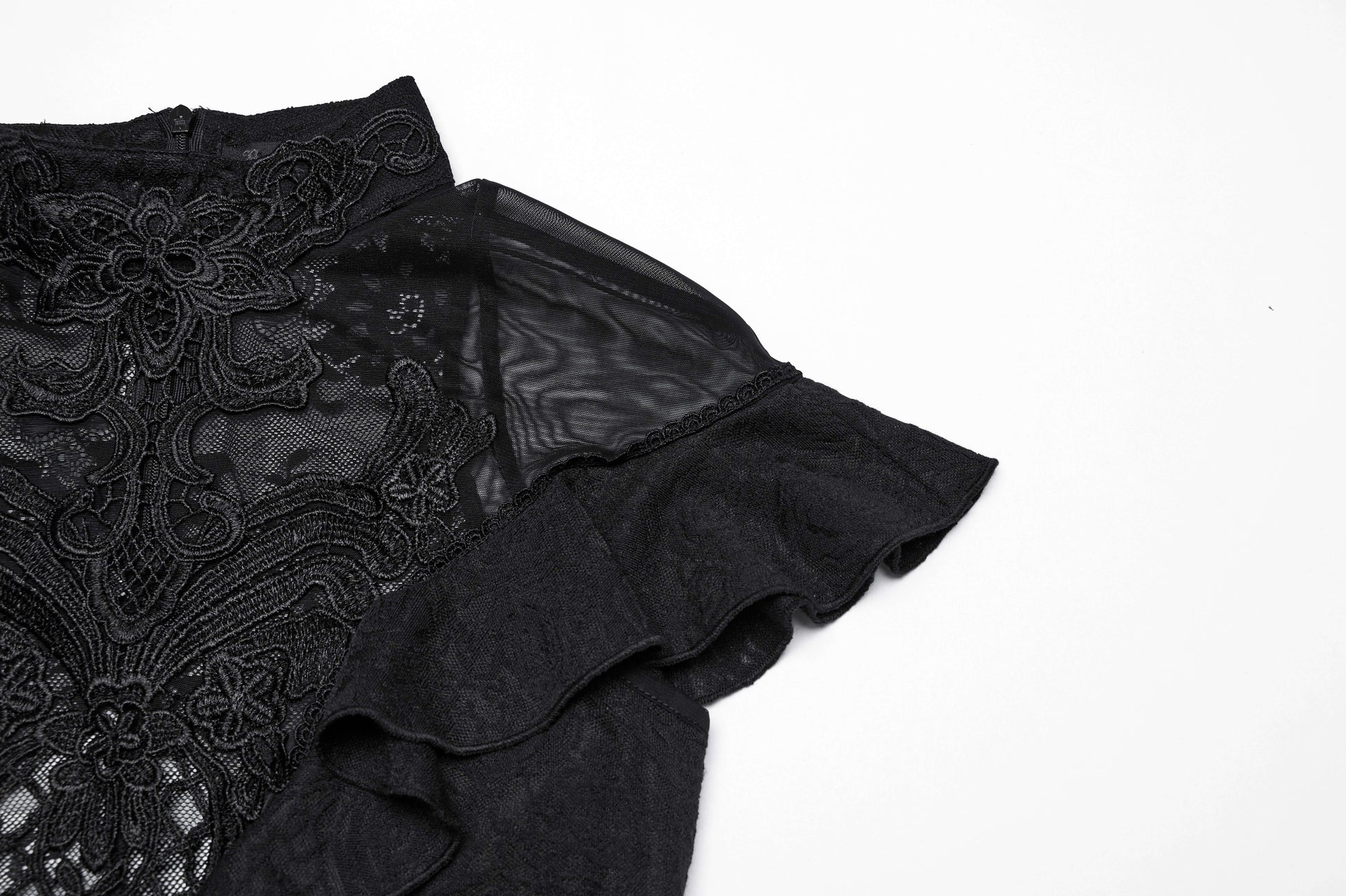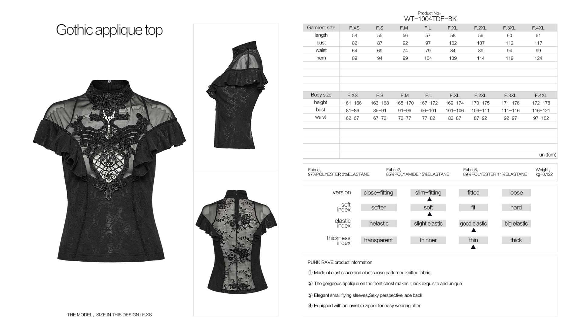 Dare to be different in our Punk Rave Gothic Applique Top! Crafted from stretchy lace with rose-patterned knit fabric that moves with you. The eye-catching chest applique adds that "wow" factor, while cute flying sleeves give a playful flutter. Turn around to reveal a cheeky lace back that's sure to raise eyebrows! The sneaky invisible zipper makes getting dressed a breeze. Who said gothic can't be fun?