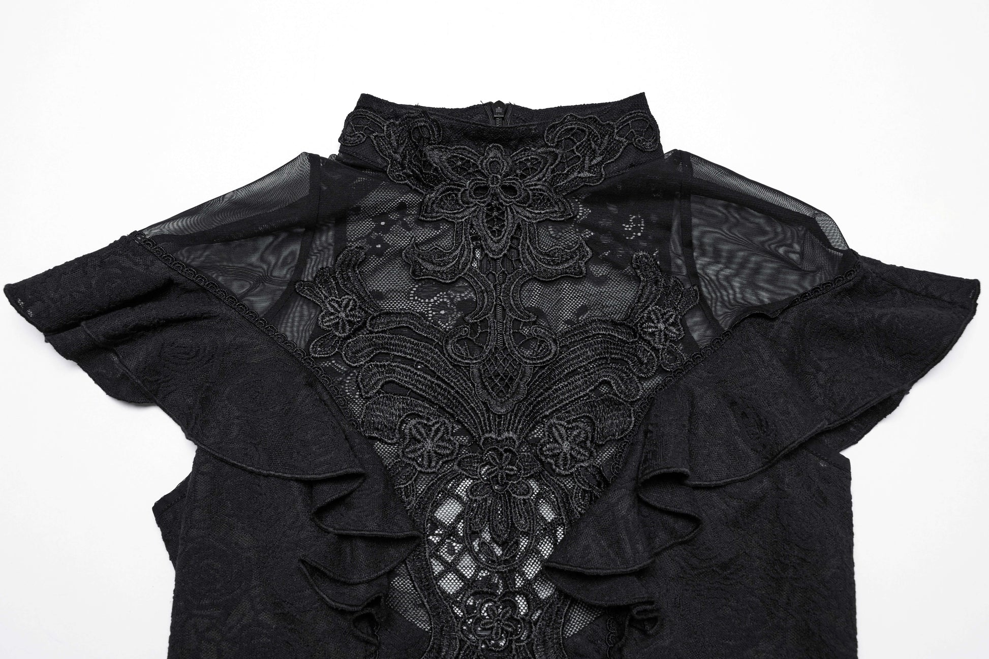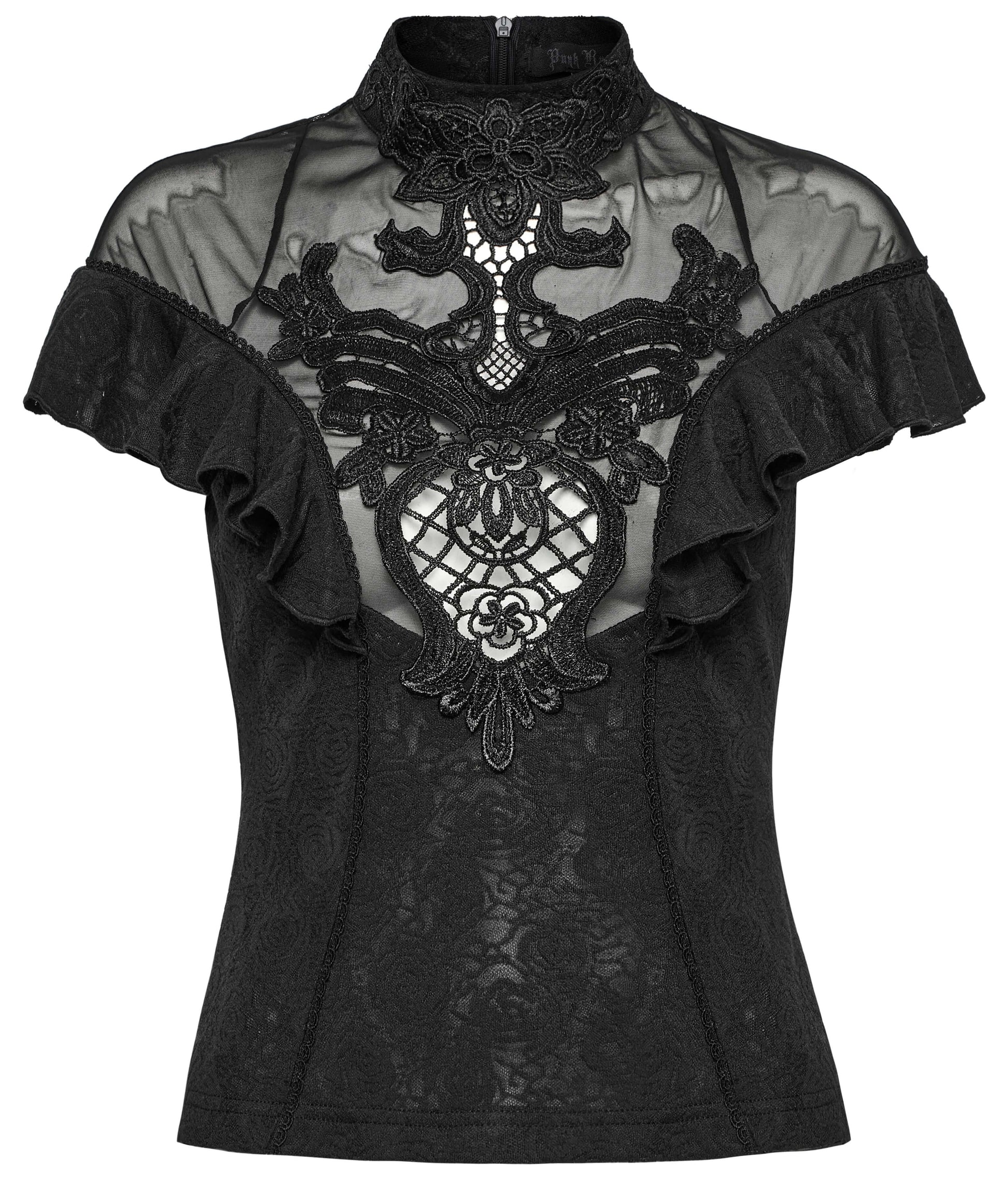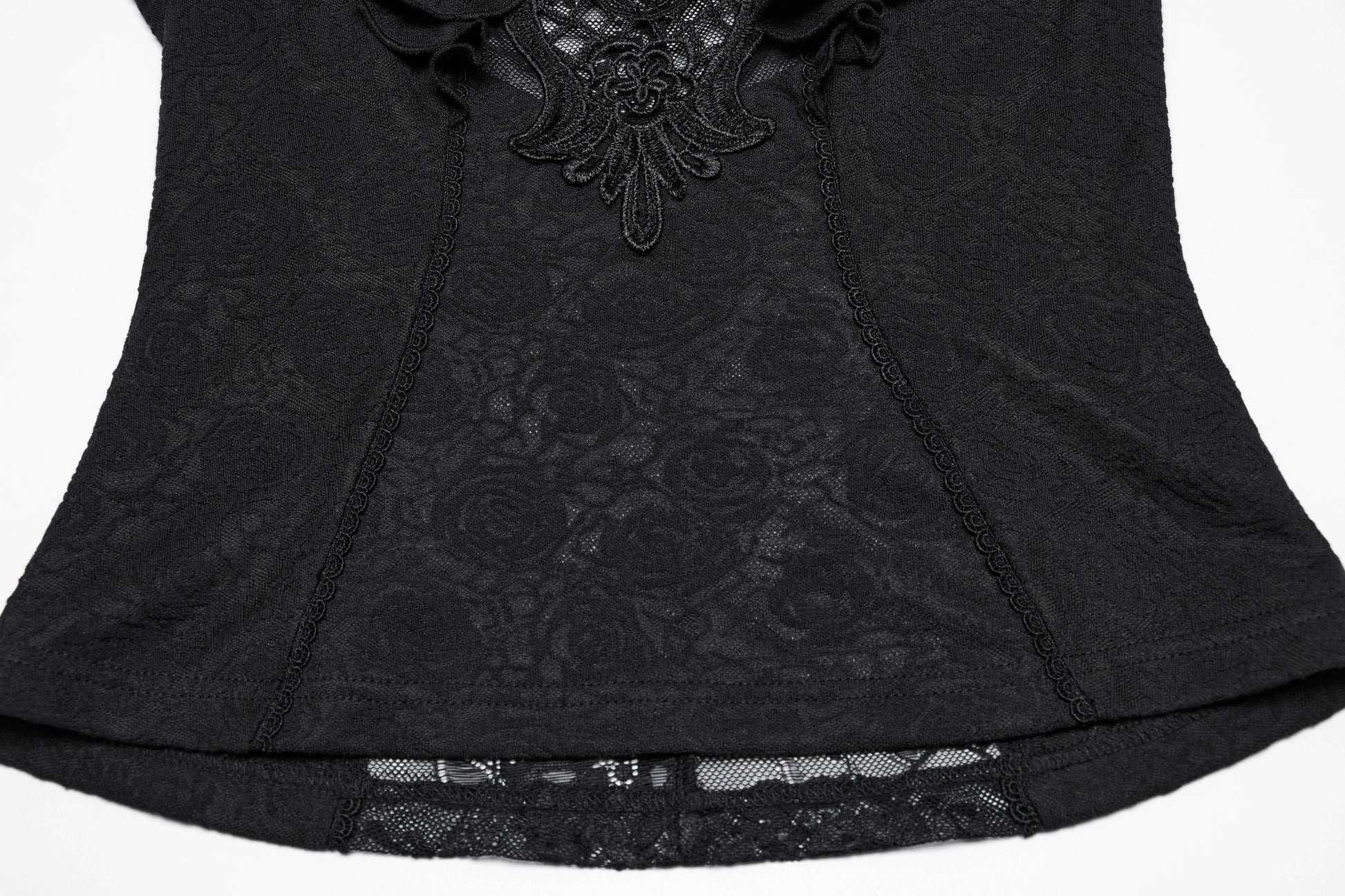 Dare to be different in our Punk Rave Gothic Applique Top! Crafted from stretchy lace with rose-patterned knit fabric that moves with you. The eye-catching chest applique adds that "wow" factor, while cute flying sleeves give a playful flutter. Turn around to reveal a cheeky lace back that's sure to raise eyebrows! The sneaky invisible zipper makes getting dressed a breeze. Who said gothic can't be fun?