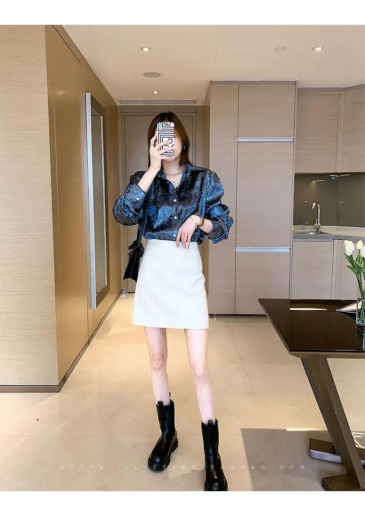 Vireous Women's Shiny Stretch Shirt, Spring and Autumn Collection