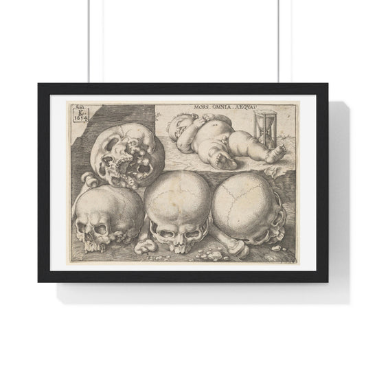 Sleeping Child with Four Skulls 'Reverse Copy' (1595–1637) by Lucas Kilian, from the Original, Framed Art Print