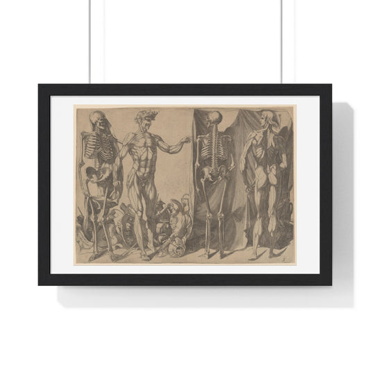 Two Flayed Men and Their Skeletons (1540–1545) by Domenico del Barbiere, from the Original, Framed Art Print