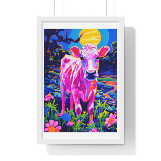Psychedelic Cow 'Designed by AI' Original Framed Art Print