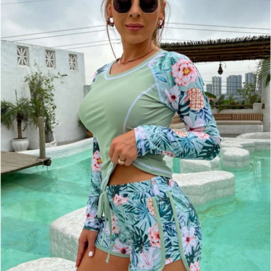 Vireous Floral Long Seeved Women's Wetsuit Set With Separate Boxer Shorts
