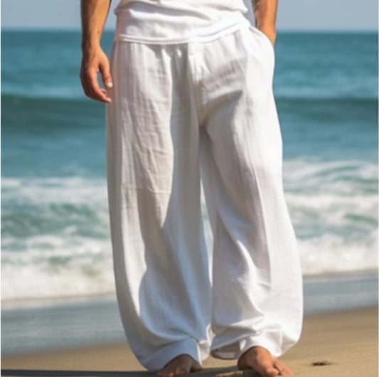 Vireous Men's Casual Baggy Pants, Beach Summer Trousers