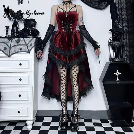 You're My Secret Gothic Punk Mini Dress, Lace Smocked Bodycon Dress