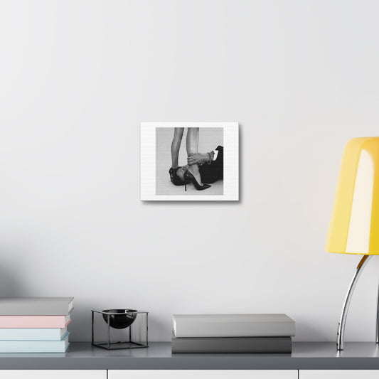 Woman in Stilettos Black & White Photographic Art Print on Satin Canvas