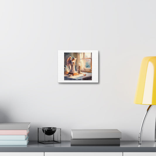 Still Life Watercolour of an Angel Figurine on a Table, Window Background, Soft Afternoon Light 'Designed by AI' Art Print on Canvas