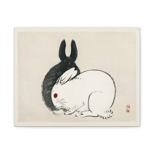 Black and White Rabbits by Kōno Bairei (1844-1895) from the 1913 edition of 'Bairei Gakan', Art Print on Canvas