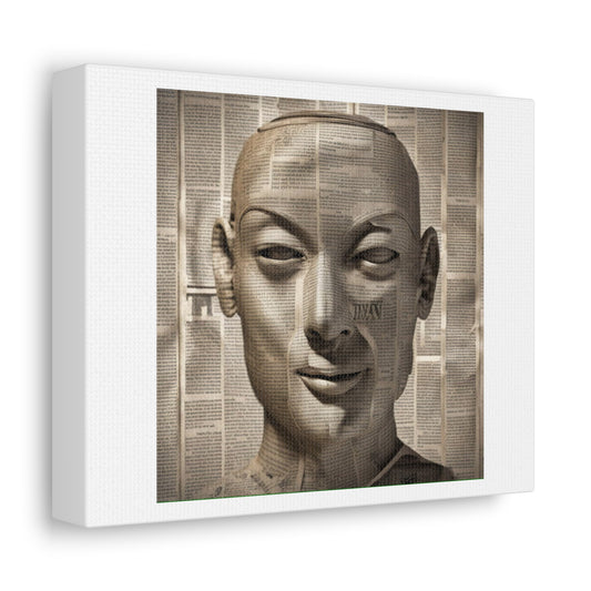 Androgynous Portait in Media Newsprint 'Designed by AI' Art Print on Canvas