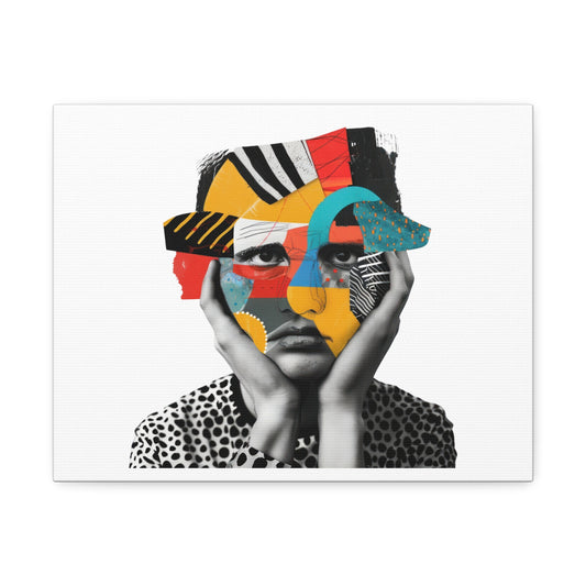 Paper Collage of Sad People Art Portrait, Print on Canvas