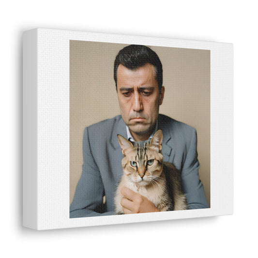 Portrait of a Cat with his Human 'Designed by AI' Art Print on Canvas
