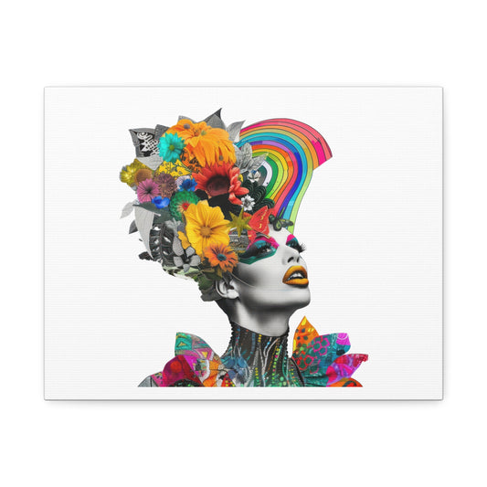 Paper Collage of Drag Queen Flower Art Portrait, Print on Canvas