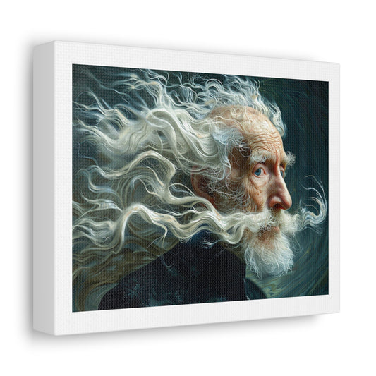 Old Man with Flowing White Hair Photorealism 'Designed by AI' Art Print on Canvas