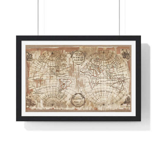 Embroidered World Map Sampler (1783) by Mariana Willmott, from the Original, Framed Art Print