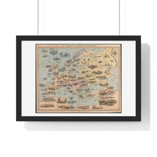 Map of the World 'The Travellers or a Tour Through Europe' (1842) by William Spooner, from the Original, Framed Art Print