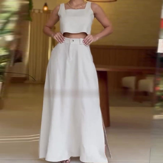 Vireous Square-Neck Sleeveless Sling Casual Skirt Suit