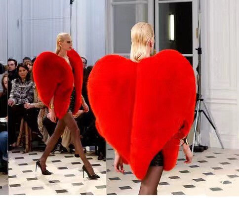Women's Avant Garde Faux Fur Red Wrap Coat, Catwalk Collection