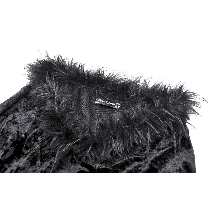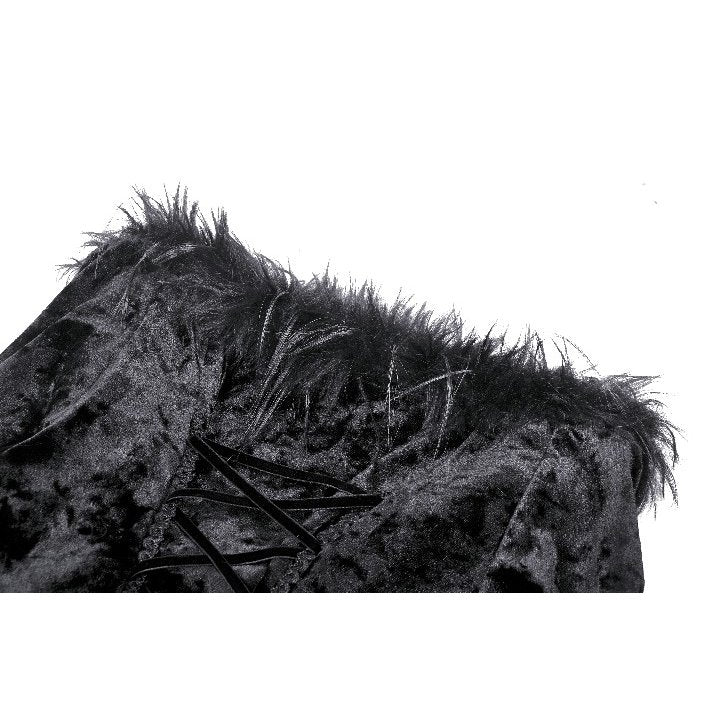 Unleash your darkly enchanting style with our Claribelle Gothic Black Velvet Maxi Dress. Lavishly trimmed with lace and faux fur, this dress features dramatic lacey cuffs and a v-neck for a bit more drama. Plus, the velvet ribbon lace up back adds a touch of seductive charm. Instantly elevate any event with this alluring dress!