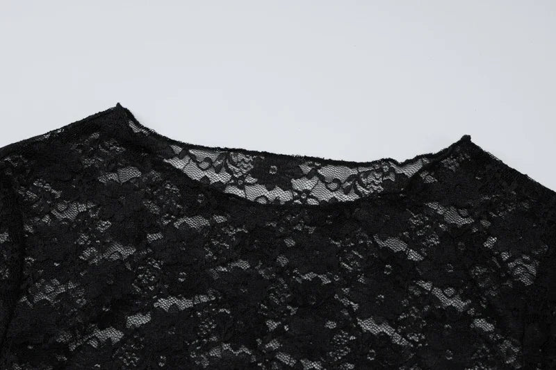 Vireous Long Sleeve See-Through Lace Crop Top