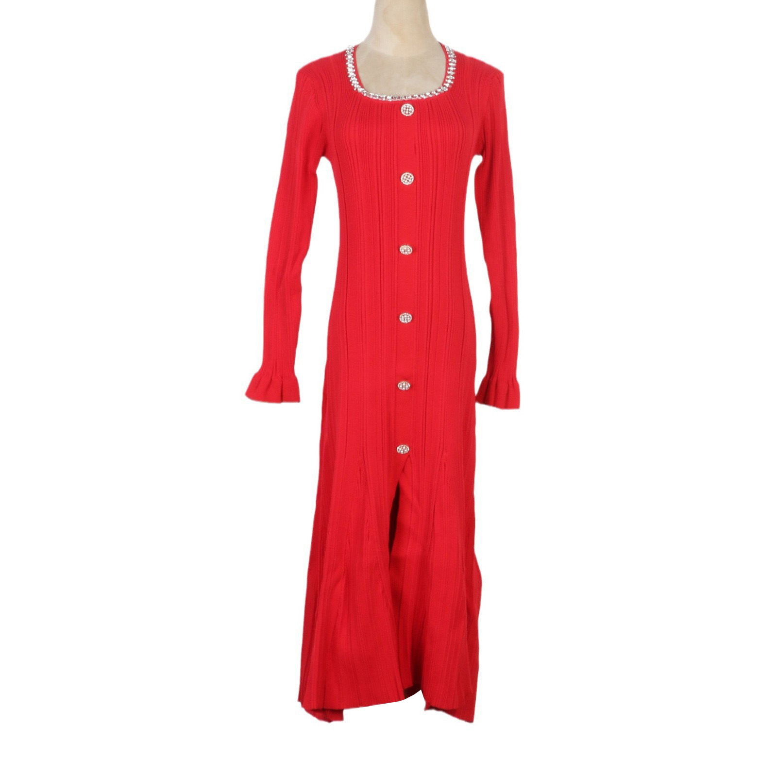 Pleated U-Neck Formal Long Dress, Elegant Long-Sleeve Knitted Dress