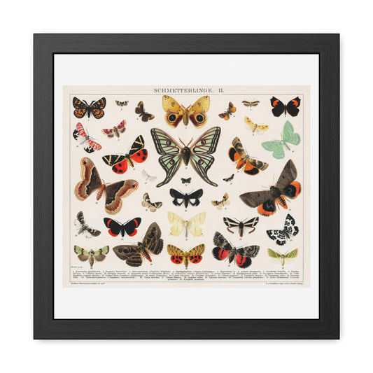 Antique Butterfly and Moth Lithograph (1894) Unknown Artist, from the Original, Wooden Framed Print